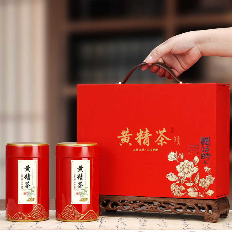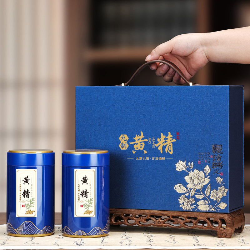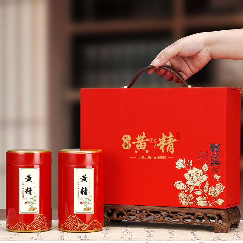 📚 高档黄精礼品盒空盒黄精茶礼品盒空盒红色蓝色九制黄精礼盒空盒