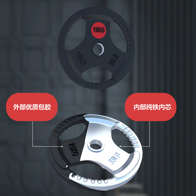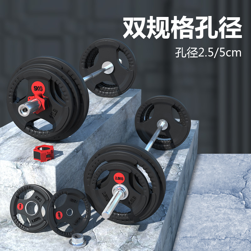 📚 杠铃片大孔小孔手抓包胶片电镀铁饼配重片清仓处理健身通用哑铃片