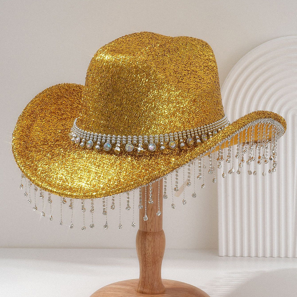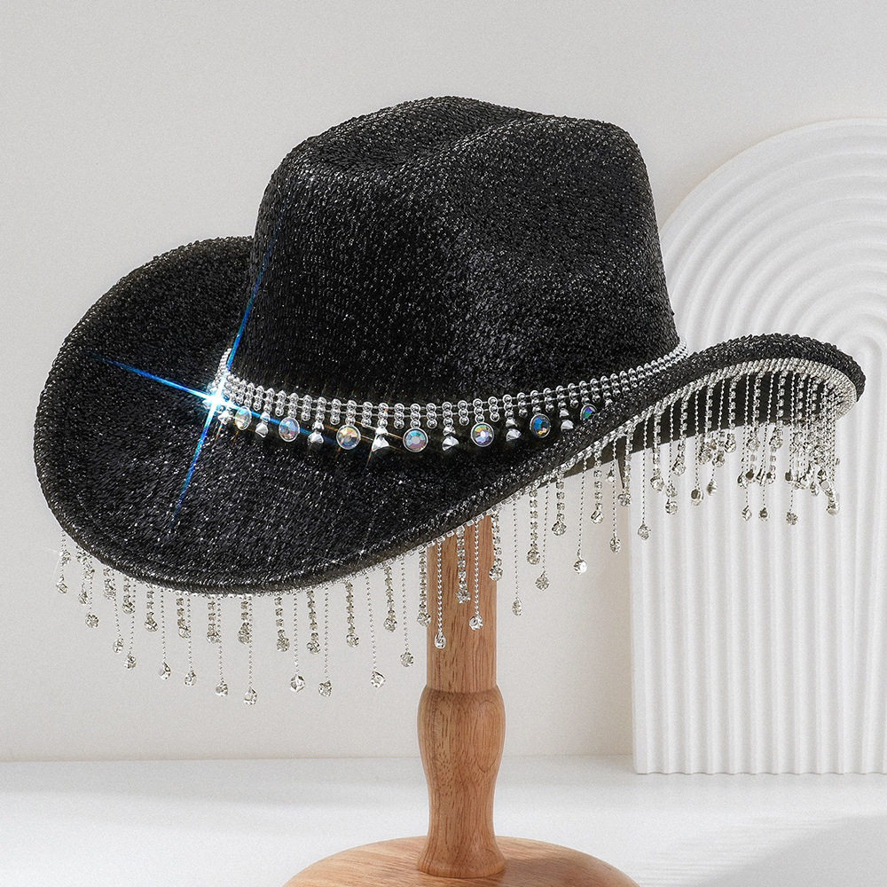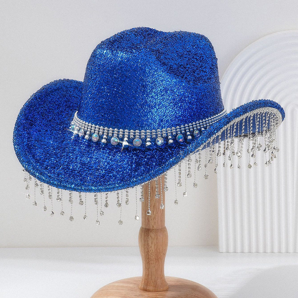 📚 男女款欧美大檐礼帽独特爵士牛仔帽流苏宝石水钻配饰腰带婚礼订婚