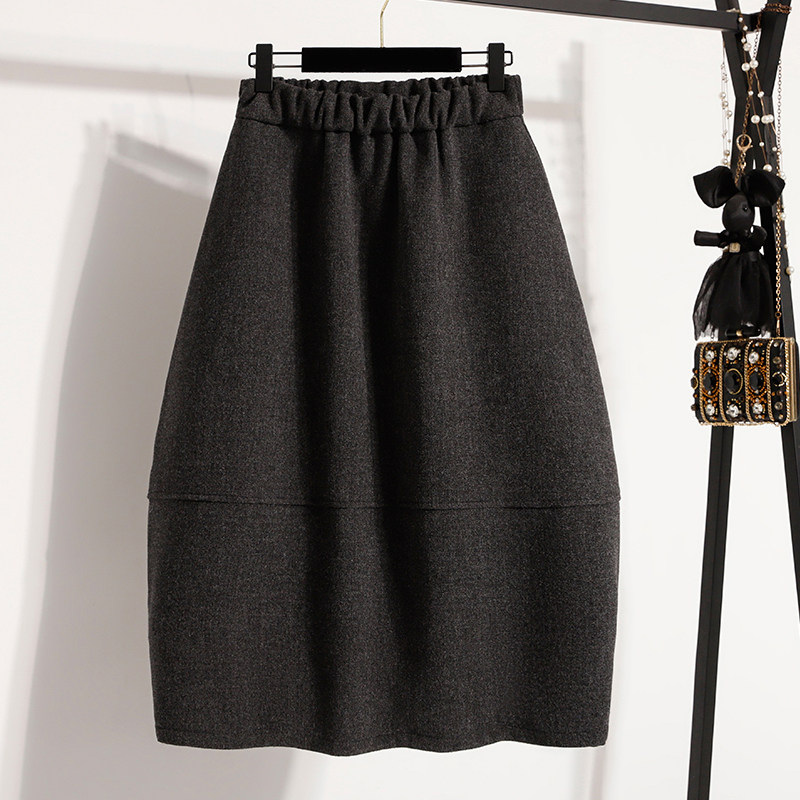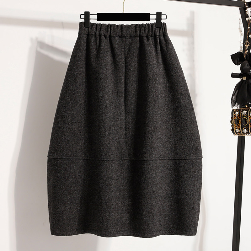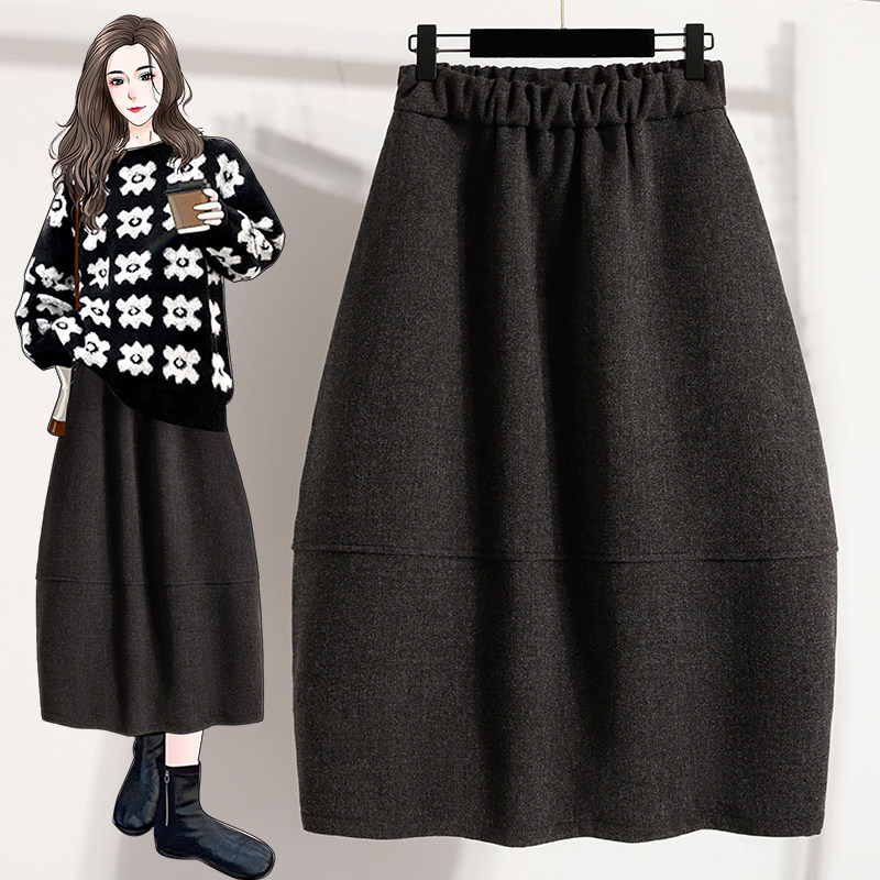 📚 休闲气质毛呢半身裙女秋冬新款大码胖mm高腰宽松显瘦中长款花苞裙