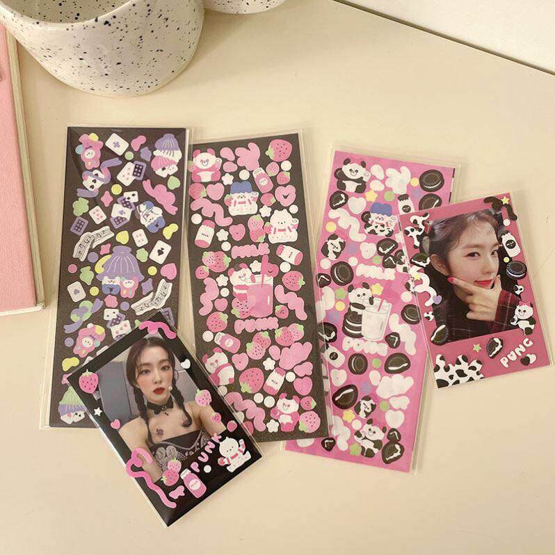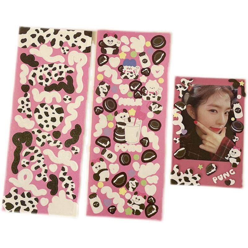 📚 2Pc Ins Laser letter Panda Ribbon PET Stickers DIY Scrapbook
