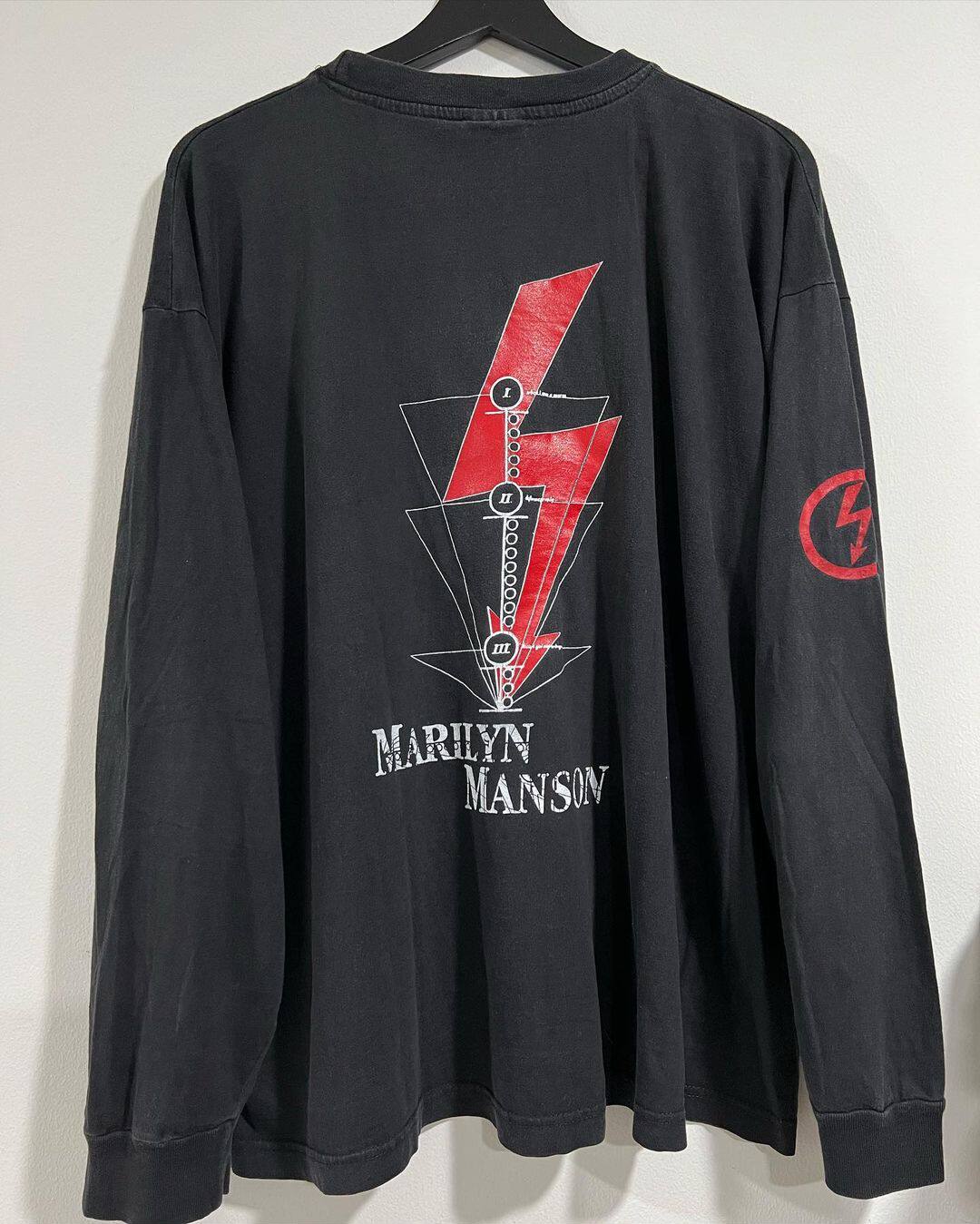 🔥玛丽莲曼森Manson高街纹身师穿搭揭秘!暗黑哥特重磅长袖T恤水洗做旧男,券后价128秒入!