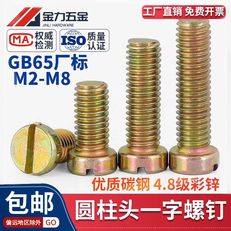 📚 GB65厂标镀彩锌平头一字槽圆柱头螺钉一字开槽螺丝M2M2.5M3M4-M12
