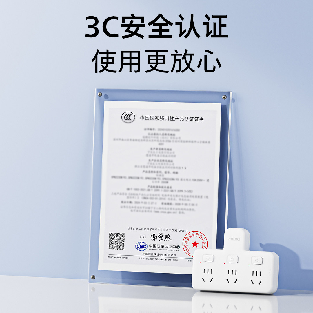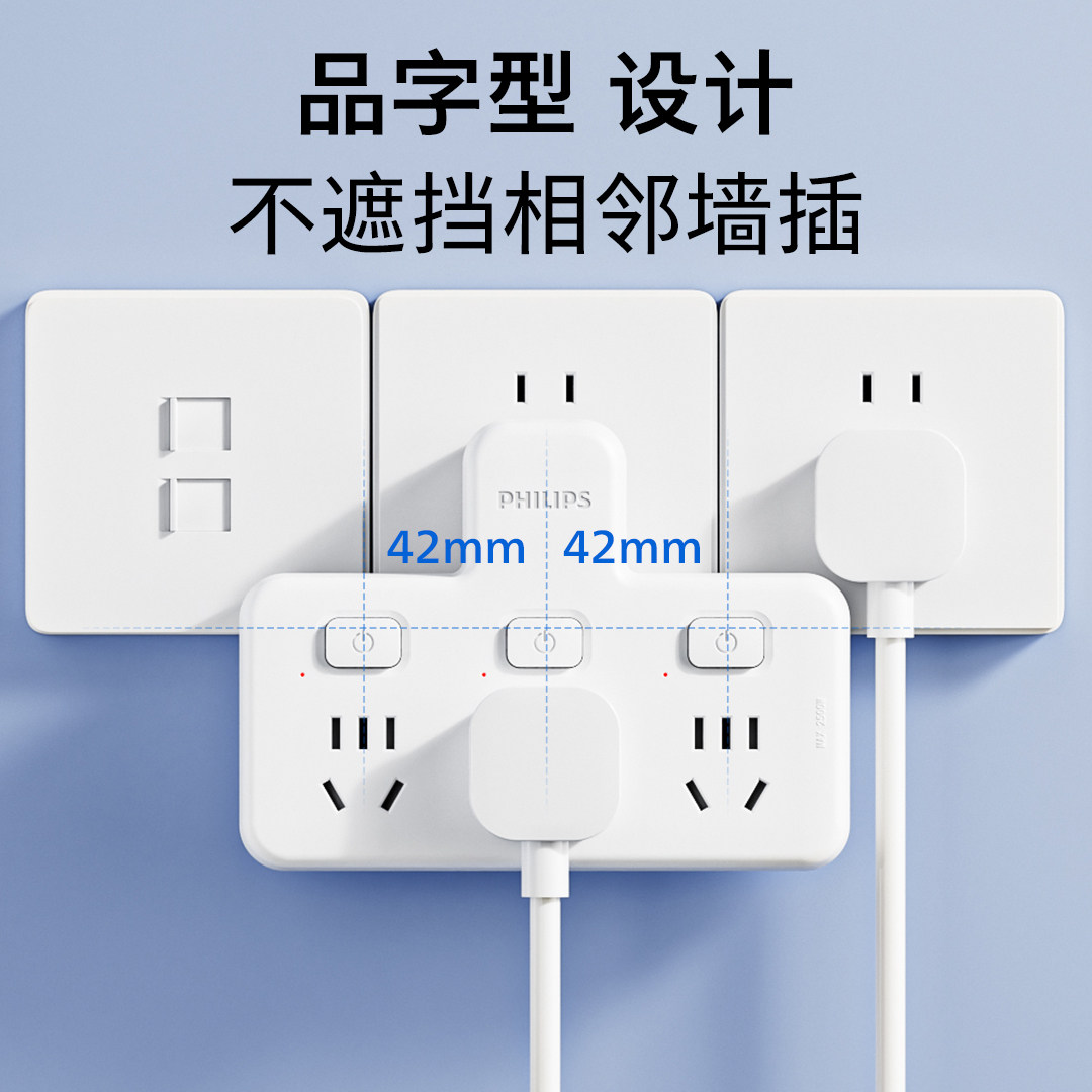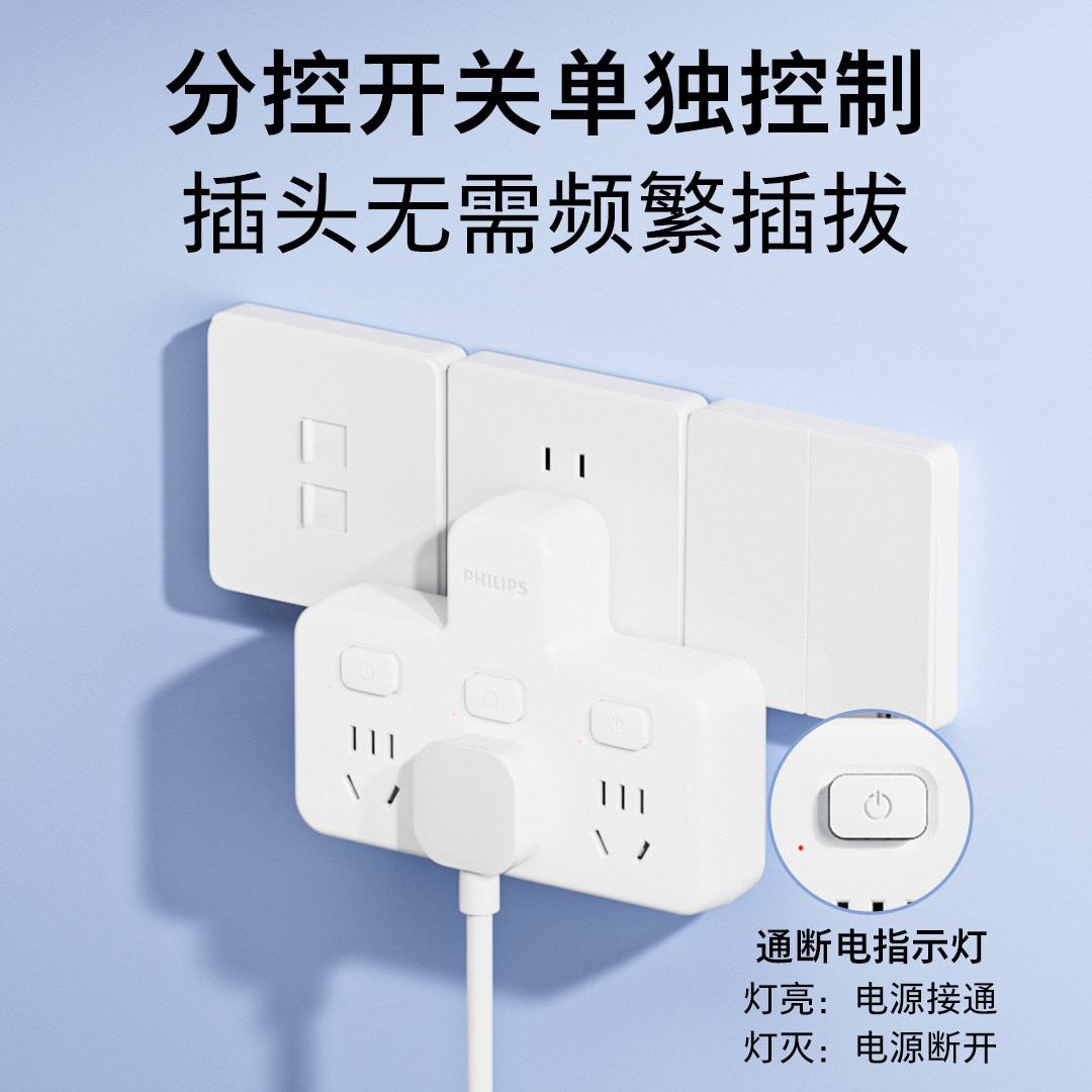 📚 飞利浦插座转换器厨房扩展usb插头分控插排多功能家用一转三排插