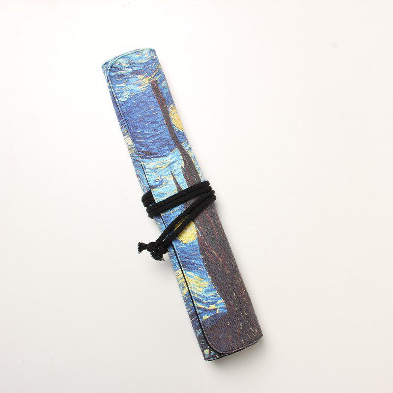📚 布艺帆布插笔袋水粉笔袋水彩笔油画笔笔帘袋卷帘式多孔毛笔收纳包
