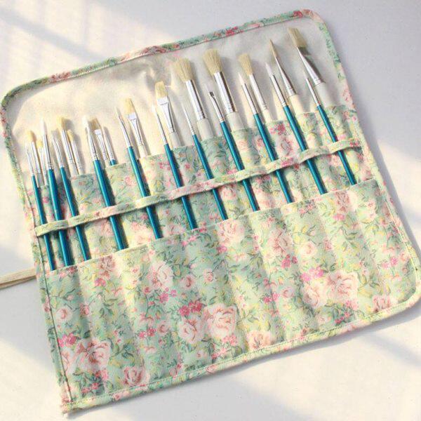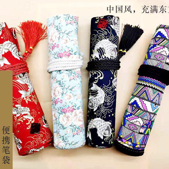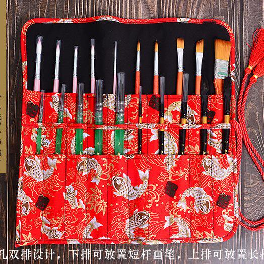 📚 水彩水粉布包画笔袋毛笔插笔袋卷式收纳笔帘油画笔包民族风布包