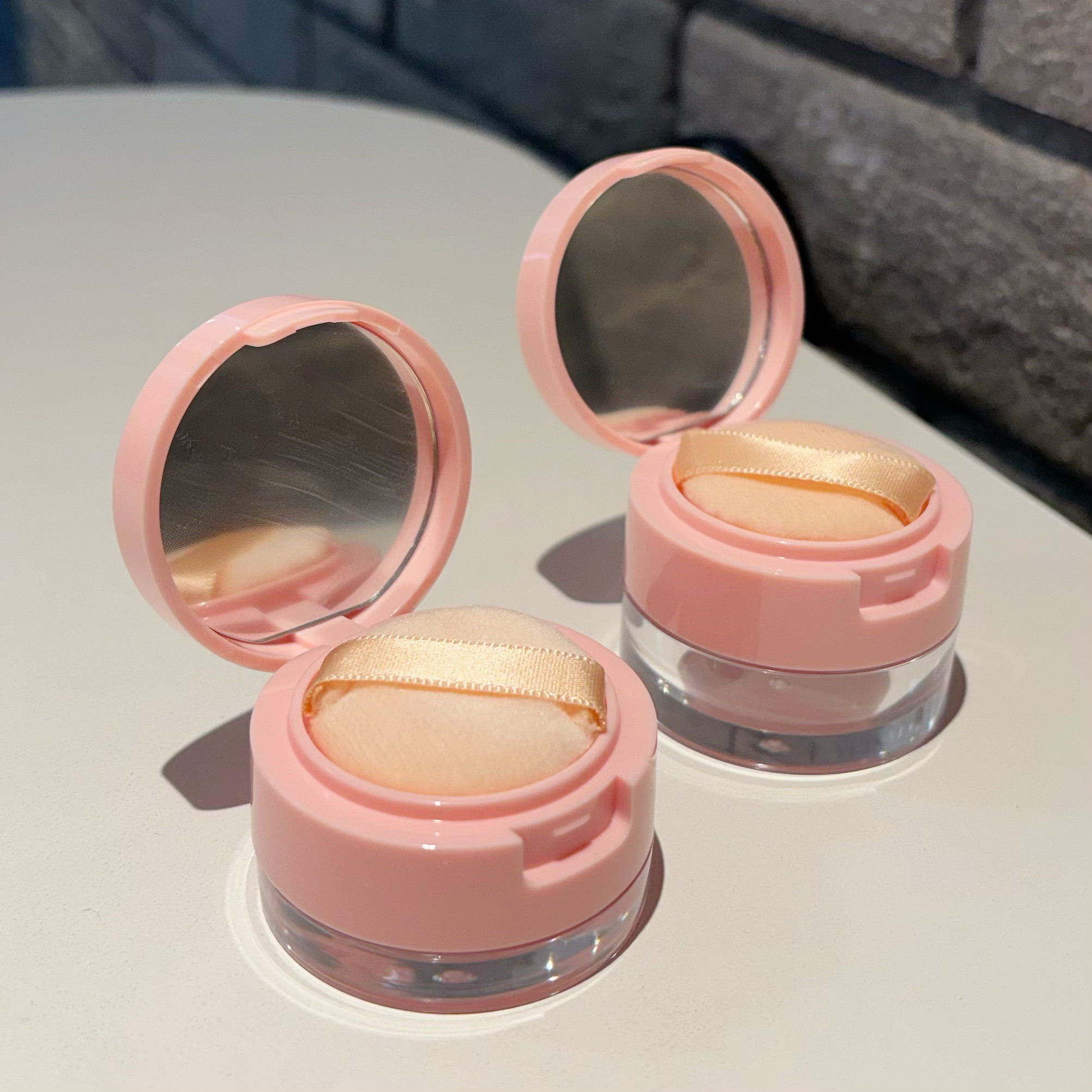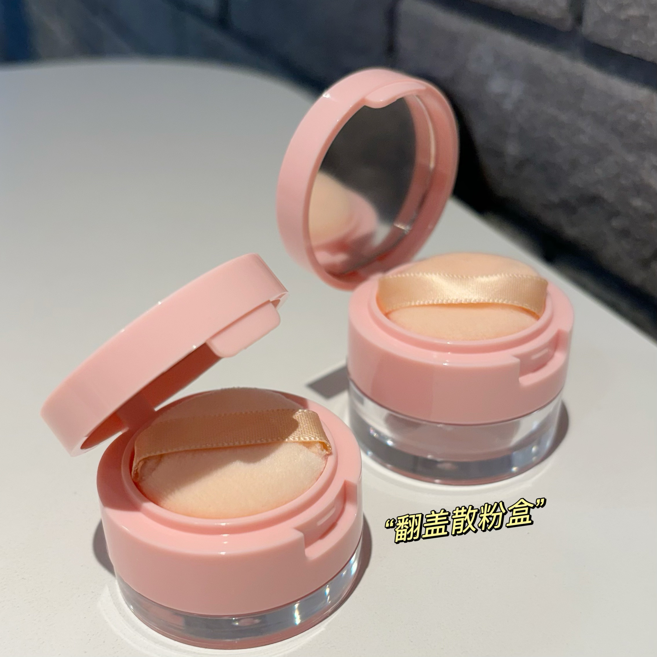 📚 粉色迷你散粉盒带镜子分装盒小号翻盖便携3g5g旅行装空盒
