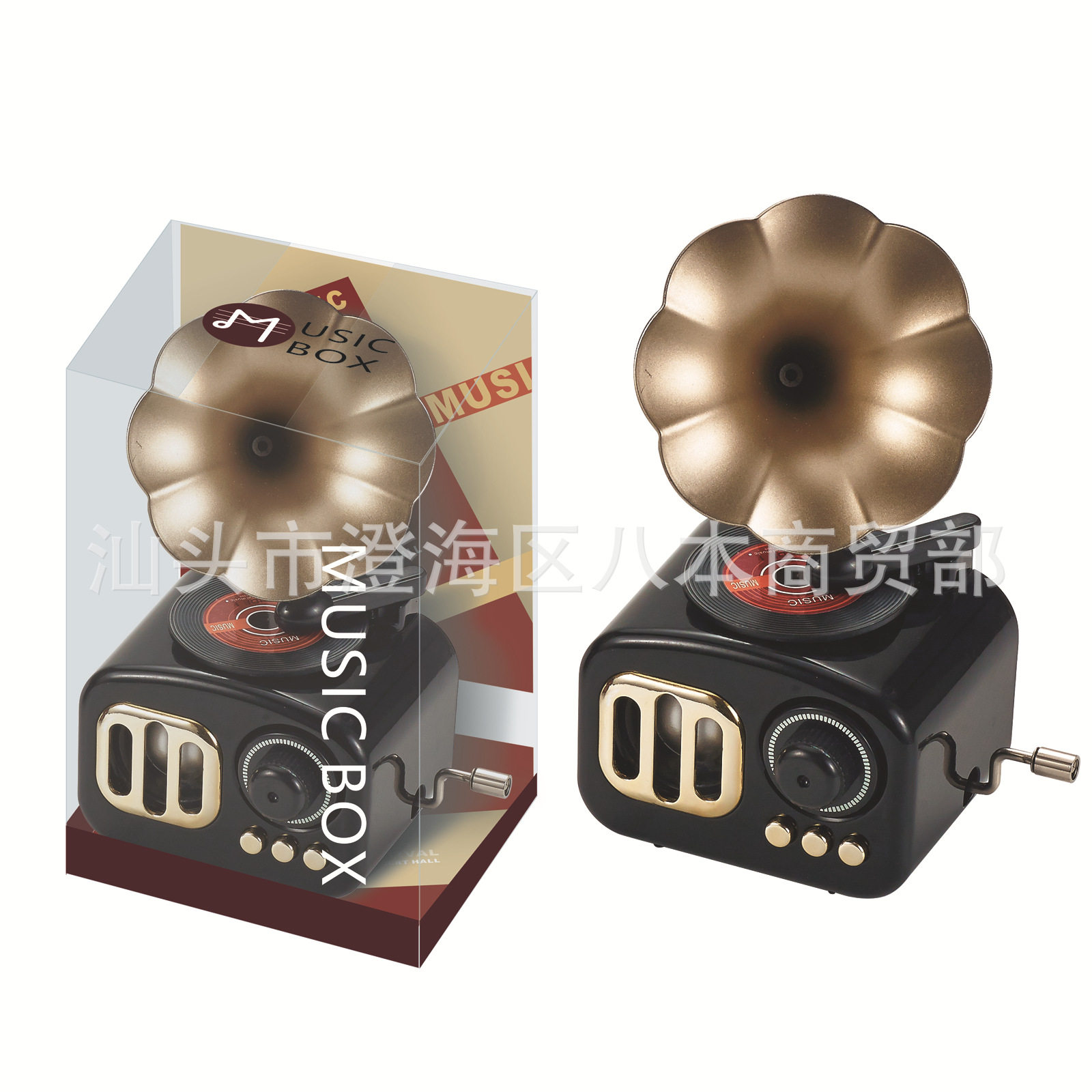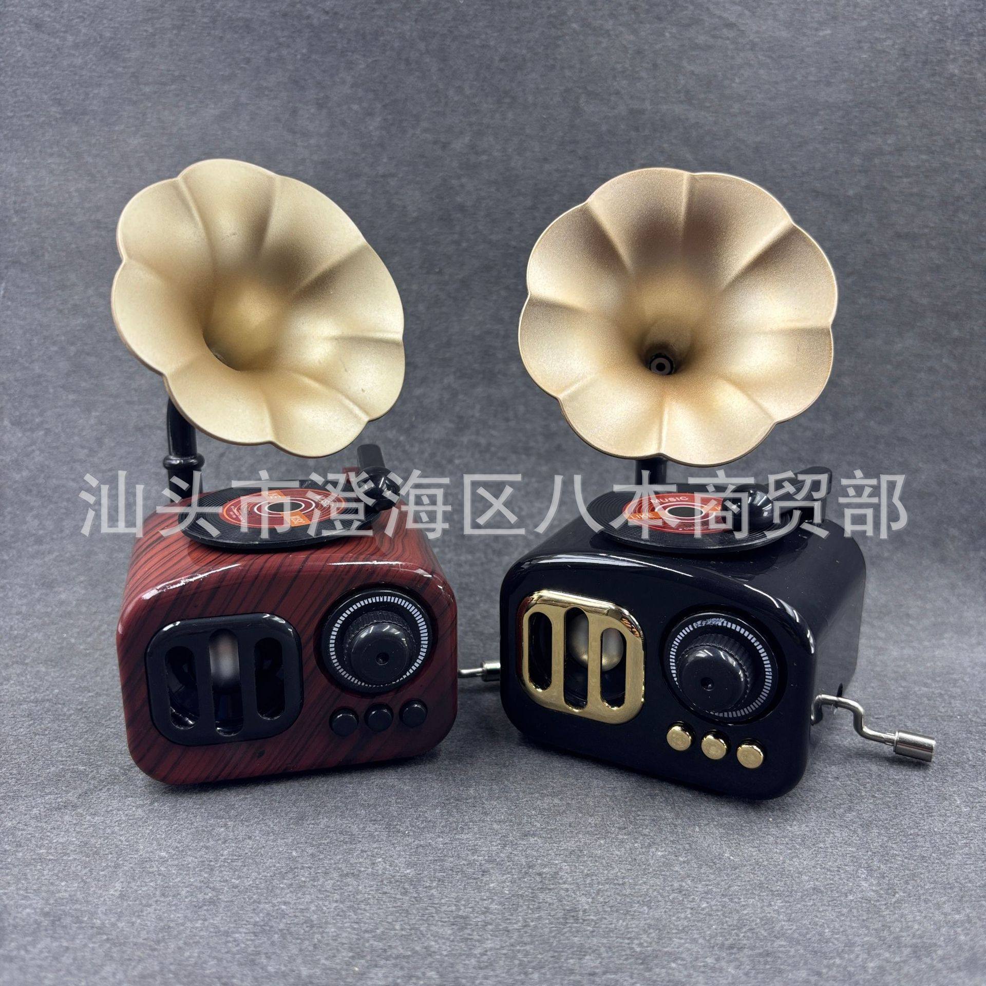 📚 复古留声机八音盒创意仿真手摇留声机音乐盒发条上链家居装饰摆件