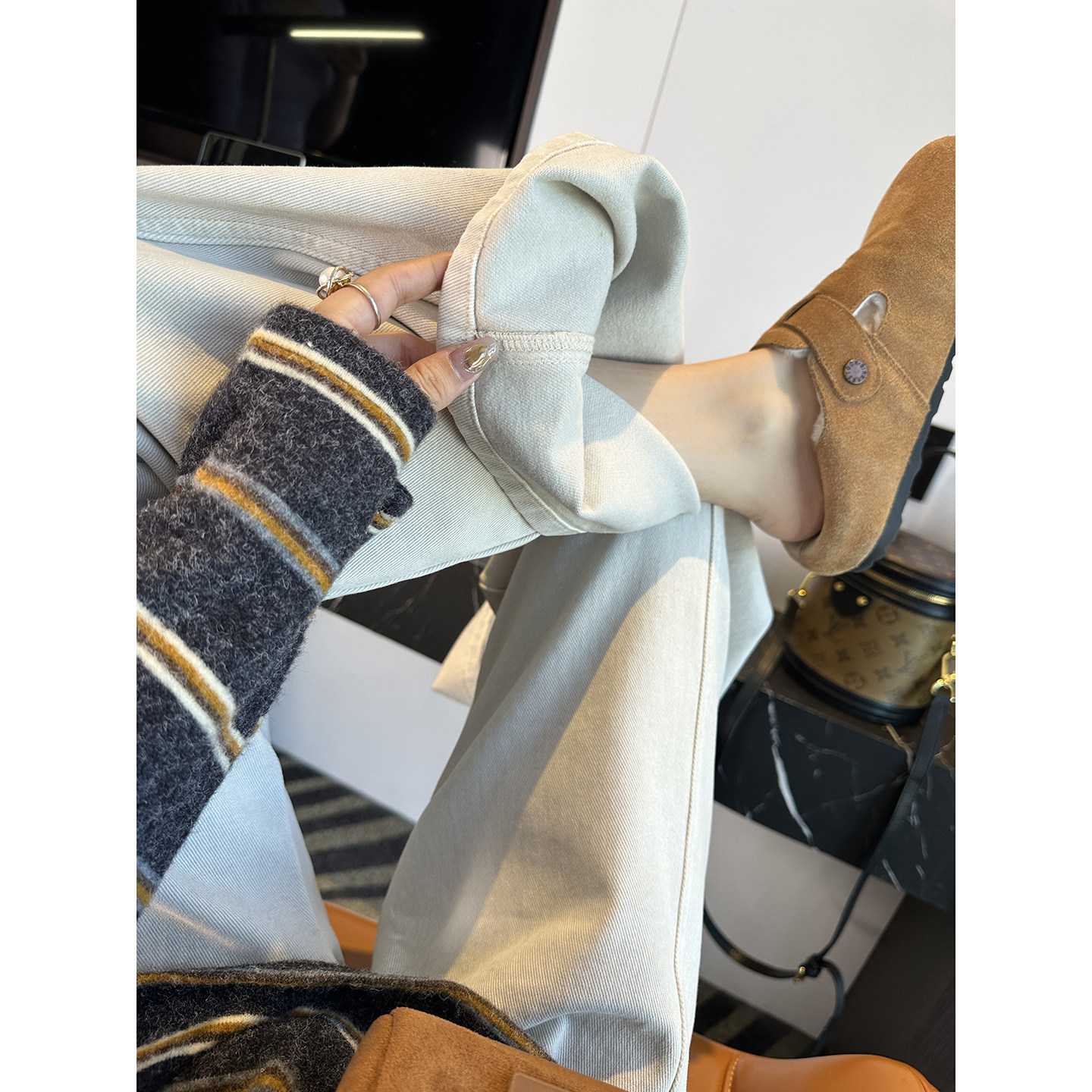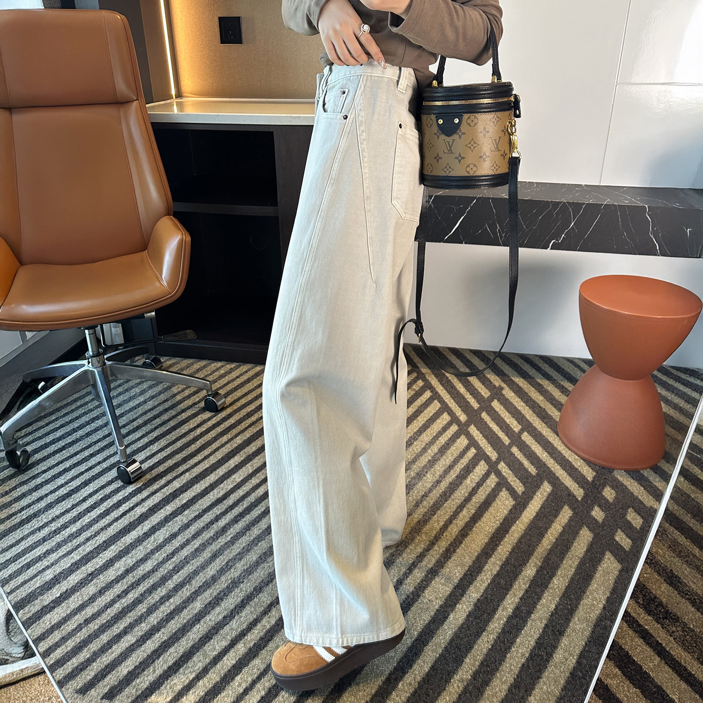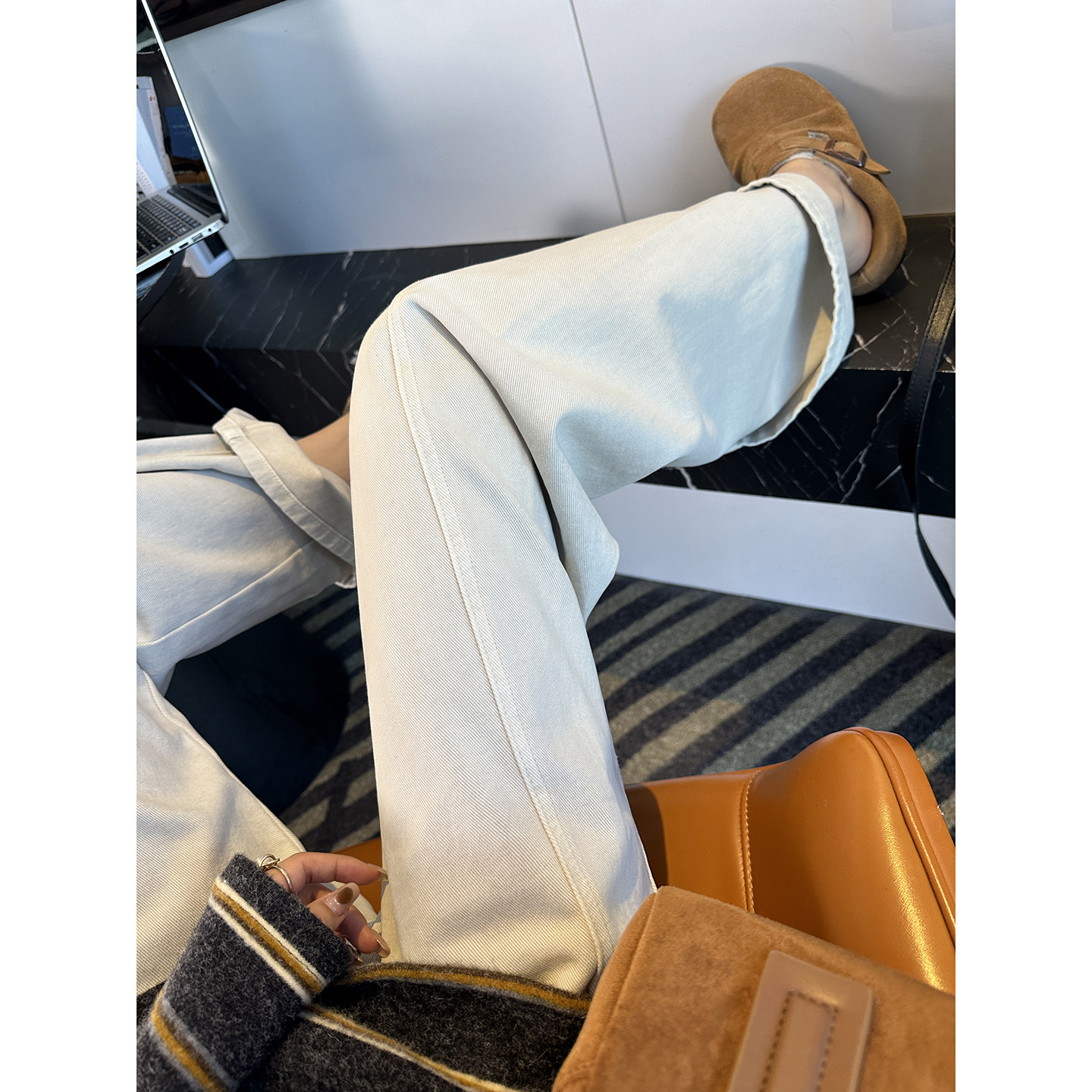 📚 版型翘楚!~巨显瘦弯刀牛仔裤女2025秋冬加绒白色宽松阔腿拖地裤
