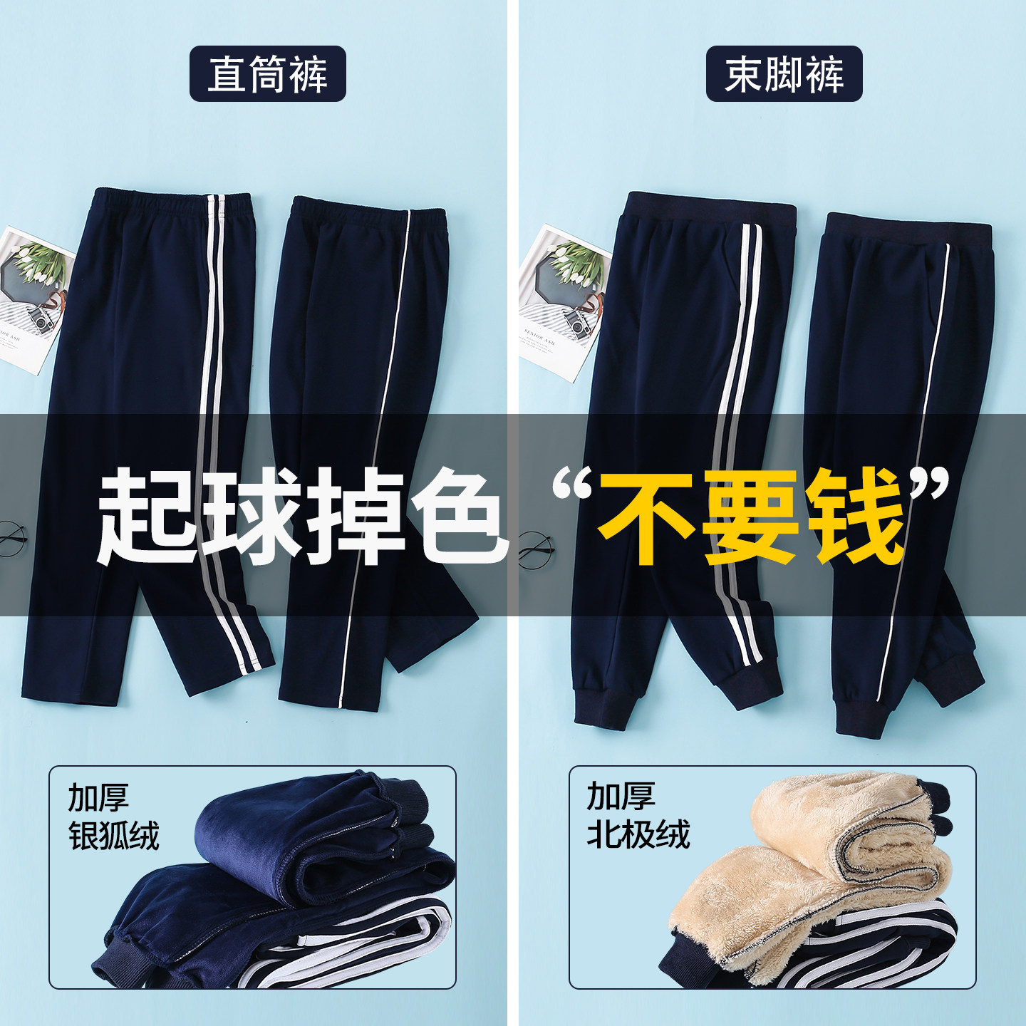 📚 儿童中小学生加绒加厚运动校服裤男女童藏青色灰色秋冬款运动裤