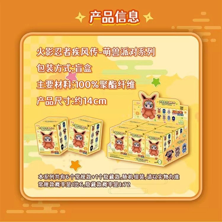 📚 top toy火影忍者盲盒萌兽派对毛绒手办周边鸣人春野樱卡卡西公仔
