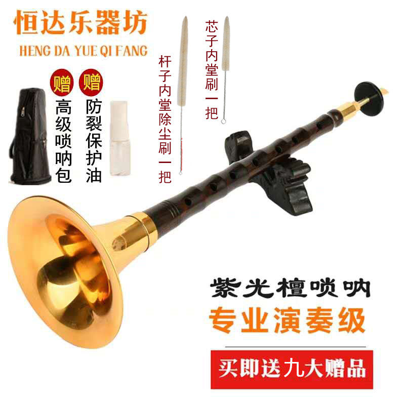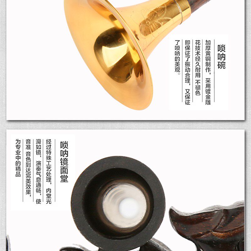 📚 精品紫光檀木专业演凑唢呐乐器全套D调初学者成人唢呐纯铜大小号