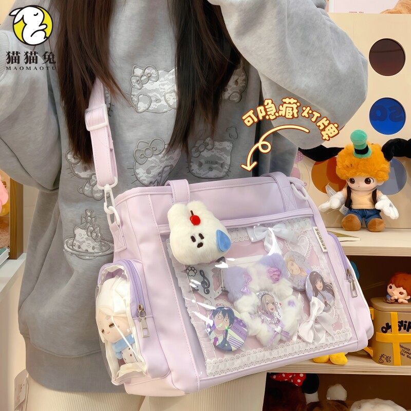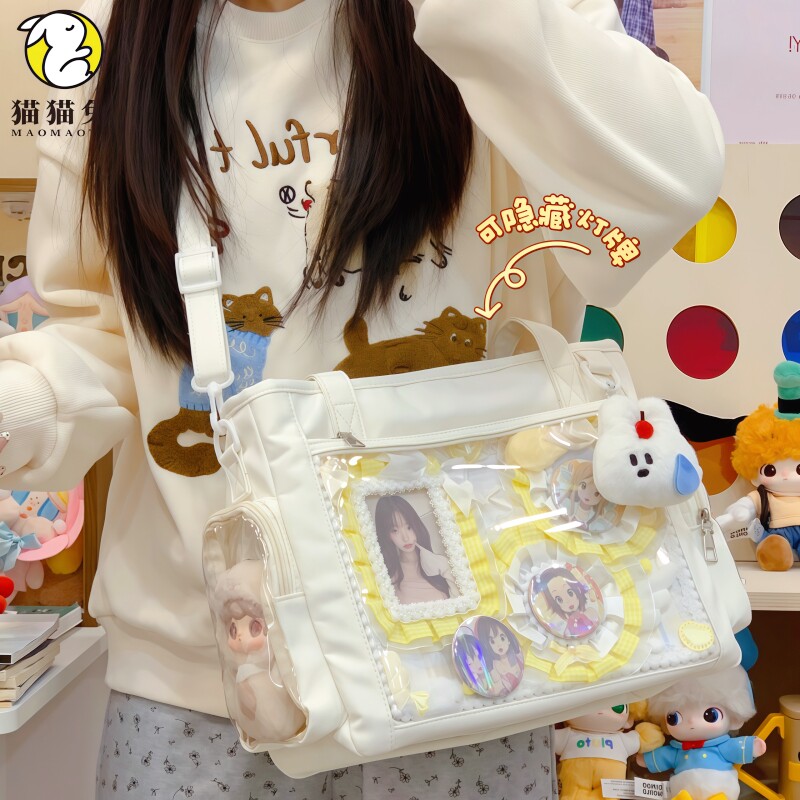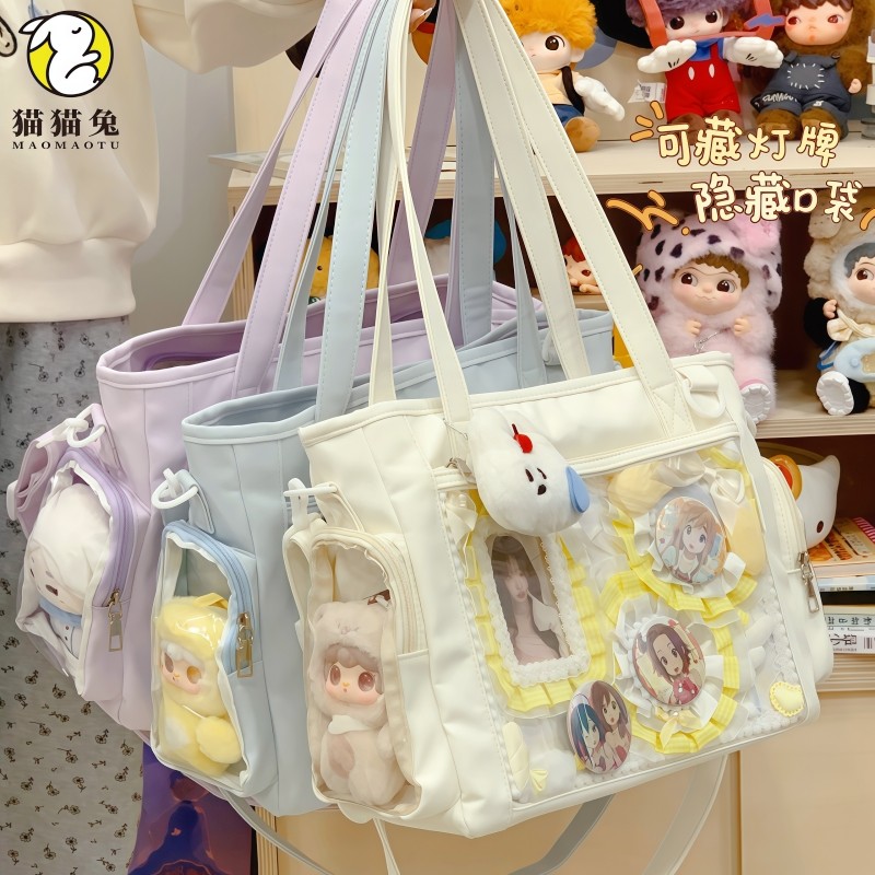 📚 绿色痛包日系透明隔层吧唧包演唱会暗格包学生日常大容量托特包女