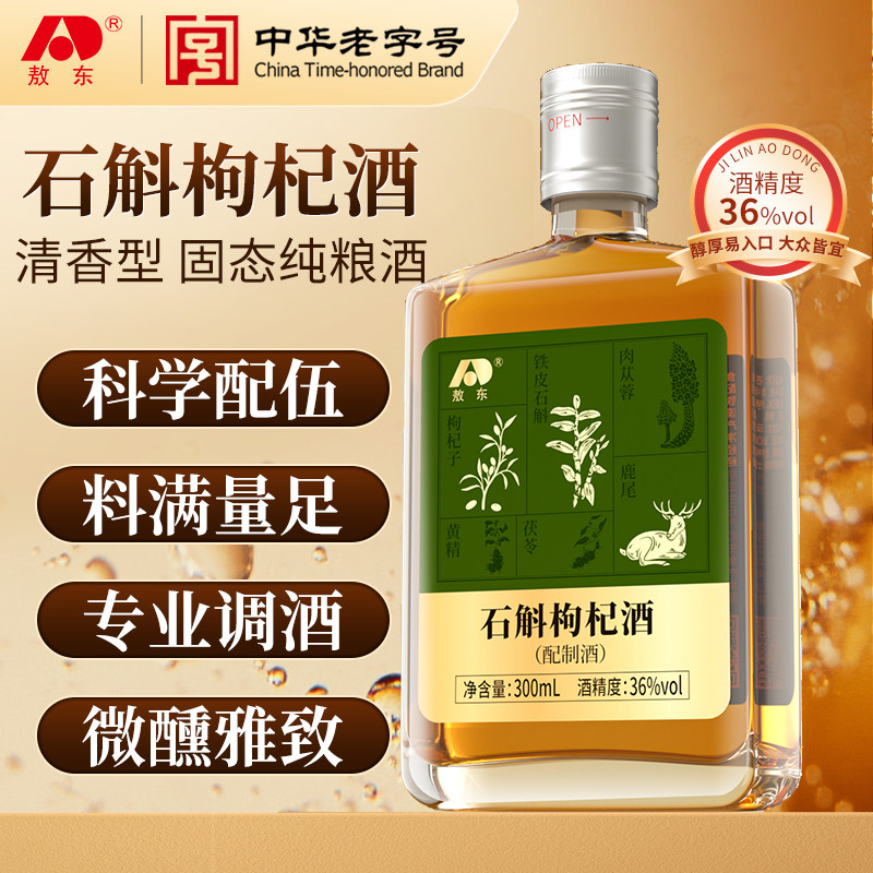📚 敖东石斛枸杞酒低度不上头纯粮食酒300ml男性滋补品养生大补酒
