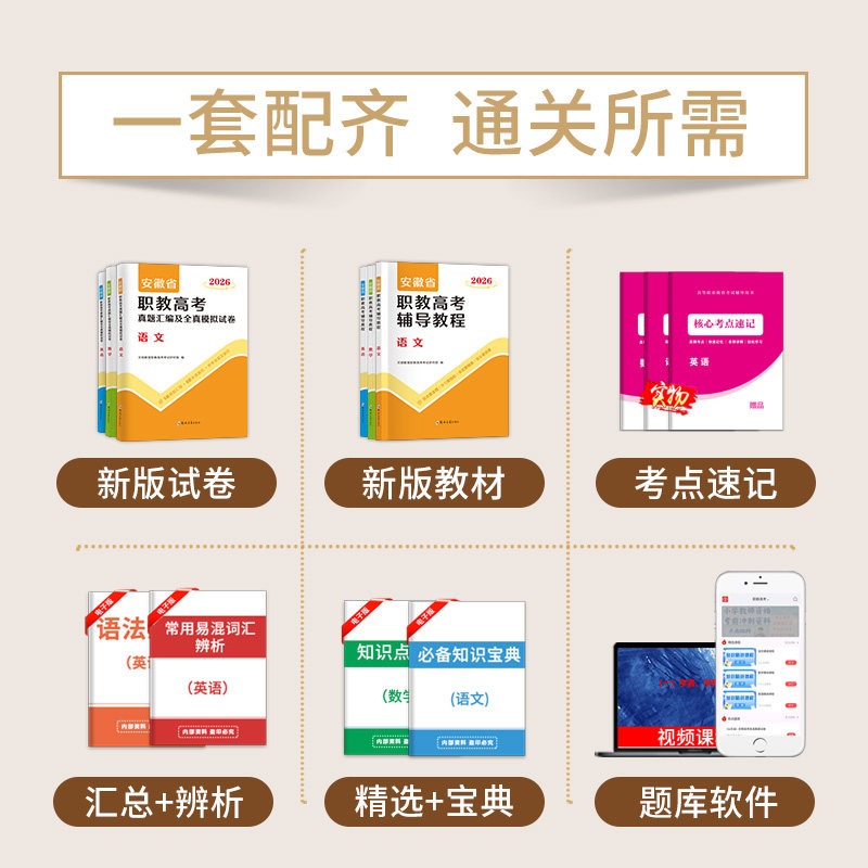 📚 2026年安徽省职教高考总复习资料教程历年真题汇编26试卷语数英单招考试辅导教材试题模拟春招联考普高考春招中职对口升学指导用书