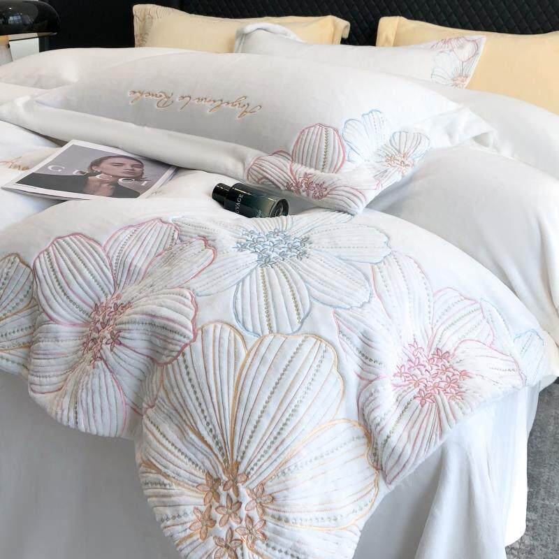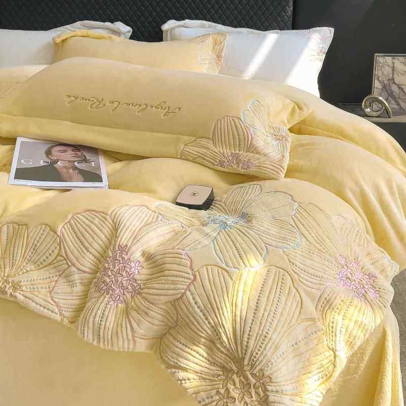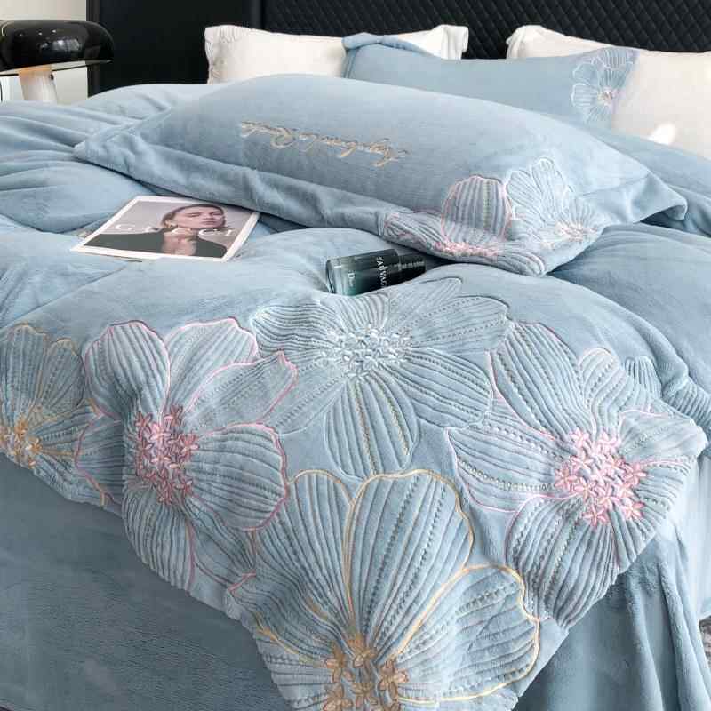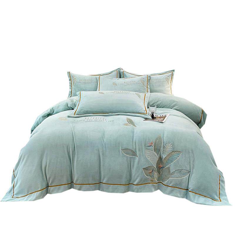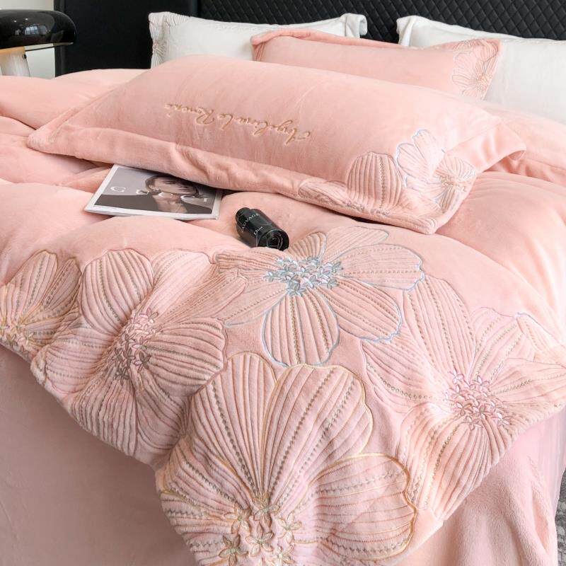 📚 正品法式轻奢冬被天牛绒四件套套刺绣加厚珊瑚绒兰绒保法奶暖加绒