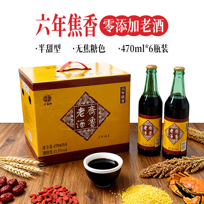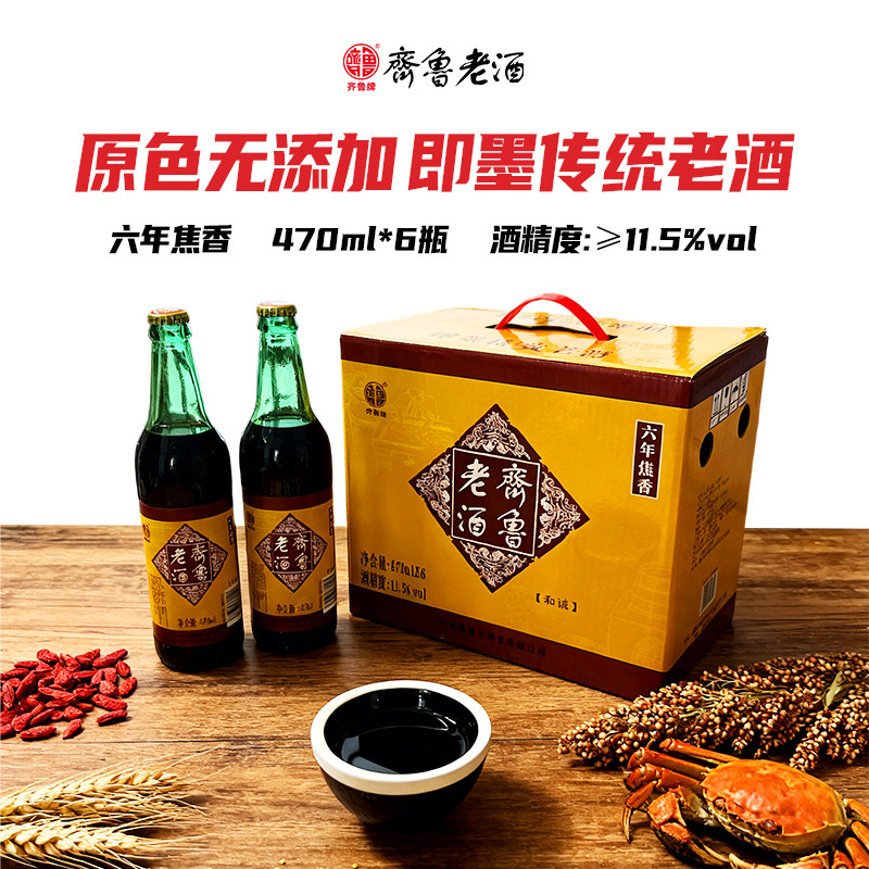 📚 齐鲁黄酒即墨老酒官方旗舰店瓶装窖藏六年焦香陈酿阿胶养生黍米酒