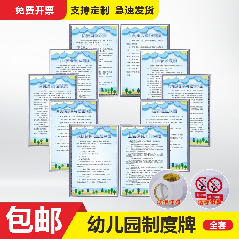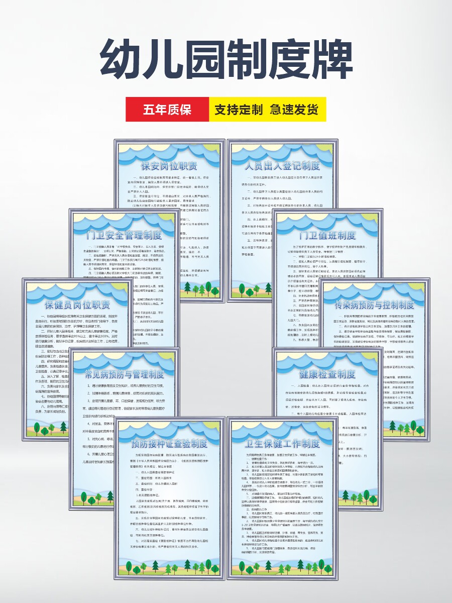 📚 幼儿园规章制度牌全套园长门卫保育员岗位职责厨房食堂校车卫生保健室办公室安全管理牌子传染病预防检查标语
