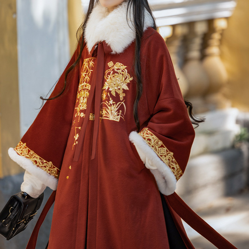 🌸首先说说它的外观,这款大衣采用了明制的设计风格,给人一种温婉、典雅的感觉。而且秋冬季节穿上它,简直是温暖如春,让人感觉非常舒适。🍁