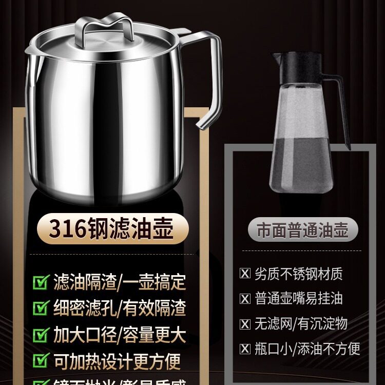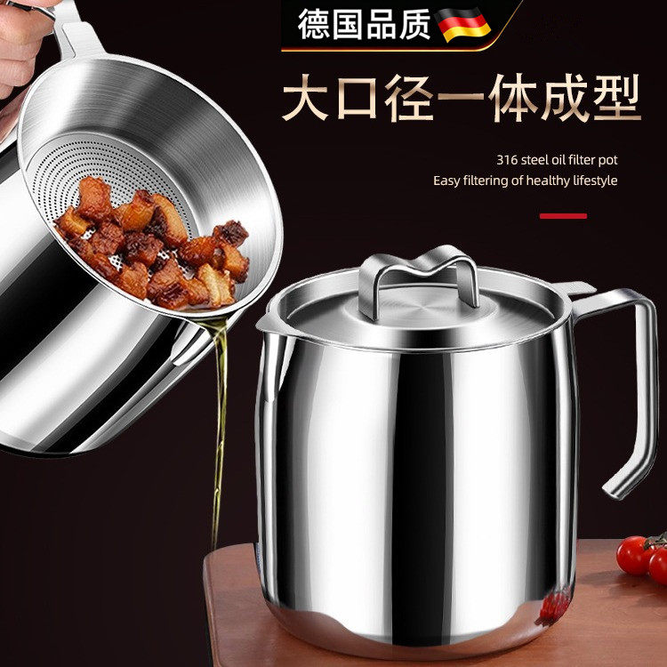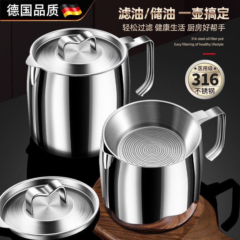 📚 德国进口316不锈钢油壶家用猪油罐油壶带盖网防漏厨房油炸过滤壶
