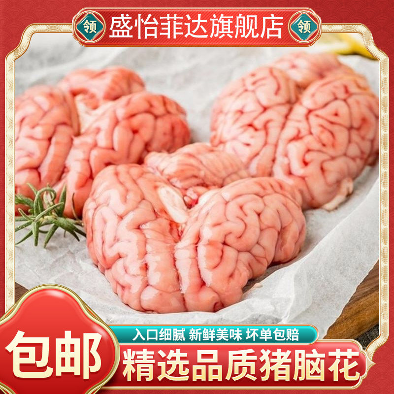 📚 猪脑花新鲜冷冻猪小脑24副生鲜大猪脑袋商用烧烤火锅炖汤食材包邮