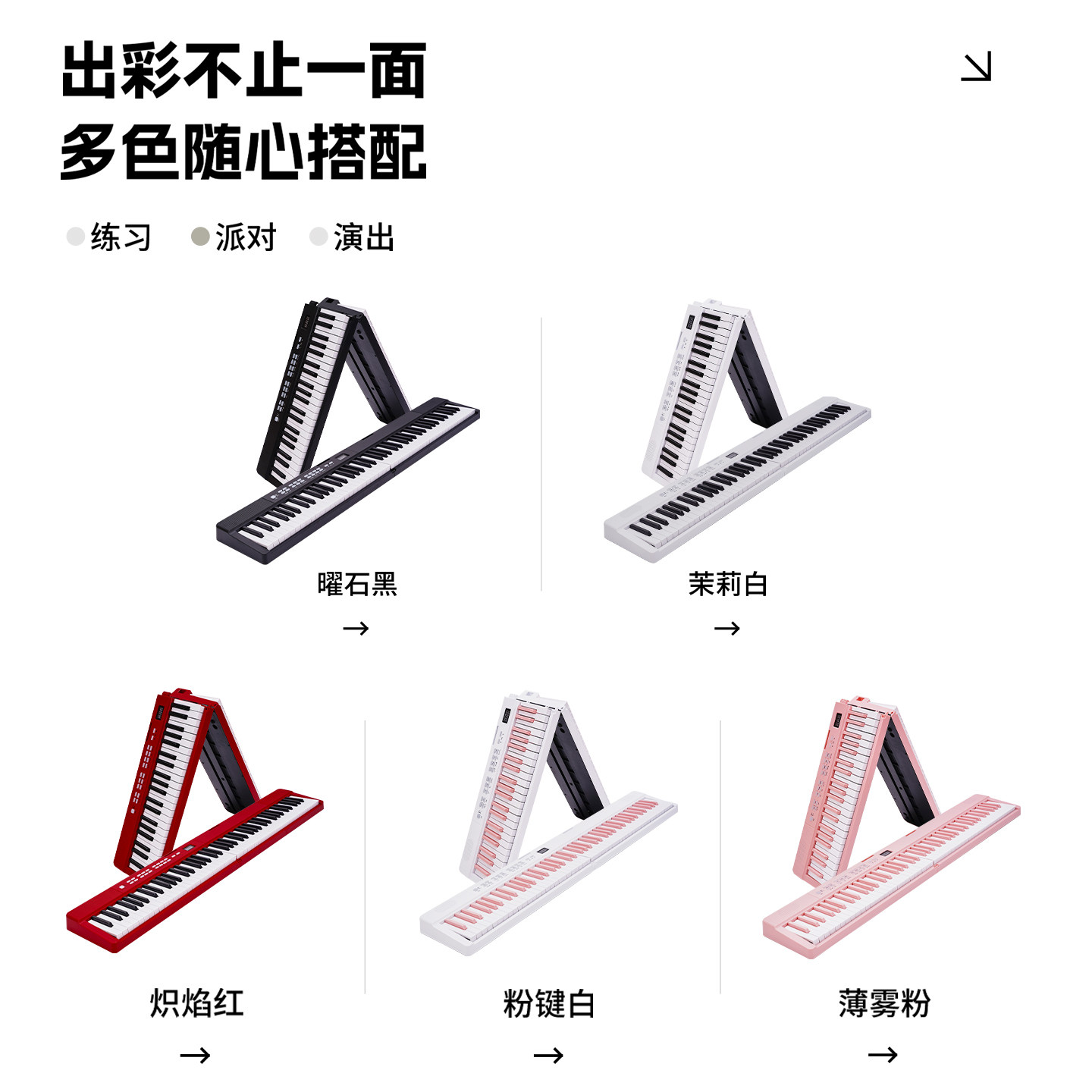 🎹首先,这款电钢琴的设计非常小巧便携,折叠设计让它在旅行、户外演出或是日常练习时都能轻松携带。而且它的声音质量非常出色,88键的力度控制精准,能够满足各种音乐风格的需求。无论是初学者还是有一定经验的音乐爱好者,都能在这里找到自己的音乐天地。
