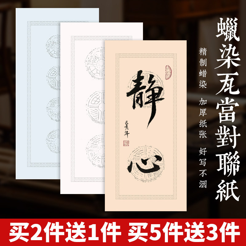 📚 二言三言四言吉语四尺四开蜡染瓦当小对联宣纸四字隶书楷书行书书法练习用纸半生半熟毛笔字比赛专用作品纸