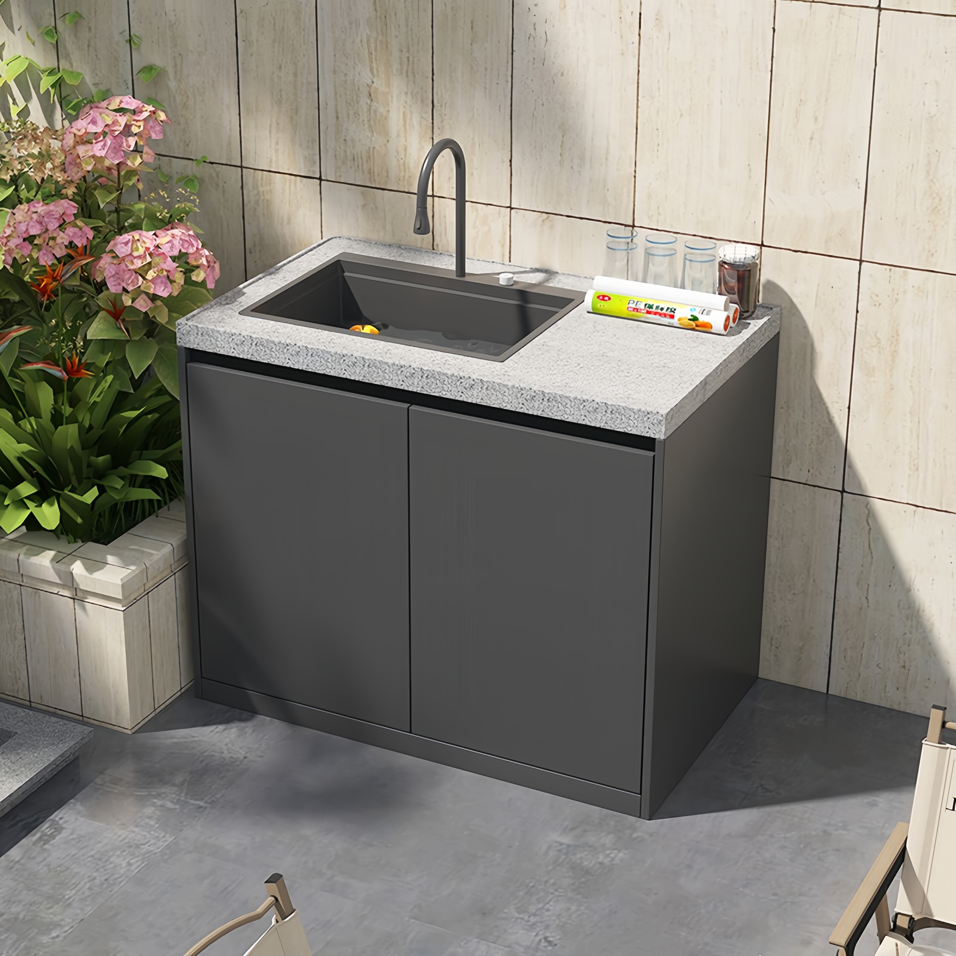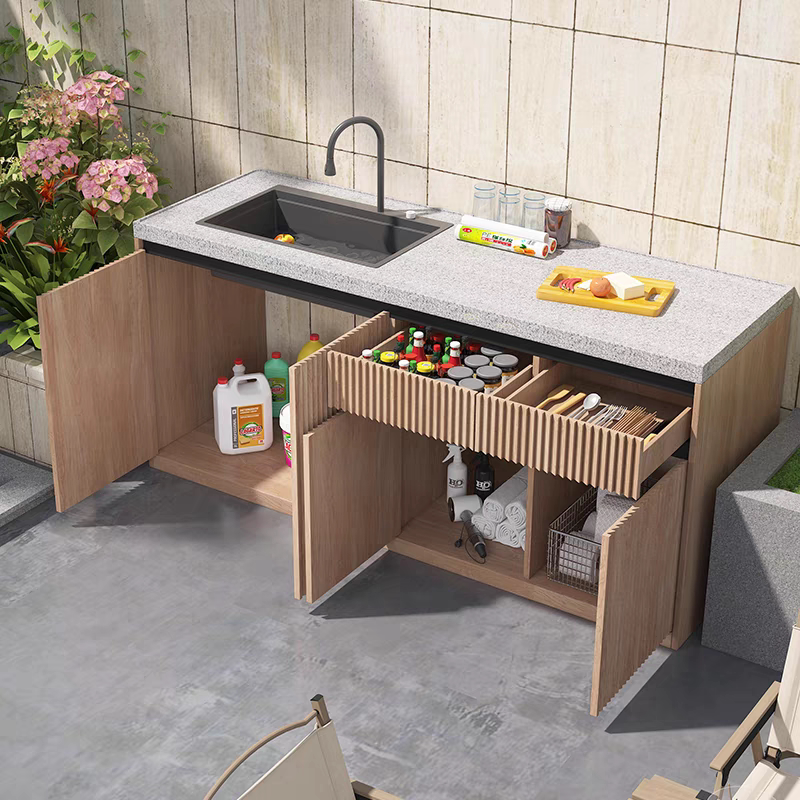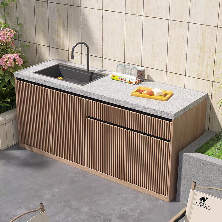 📚 石材阳台操作台户外洗手台盆一体室外洗手池厨房原石铝柜体水吧台