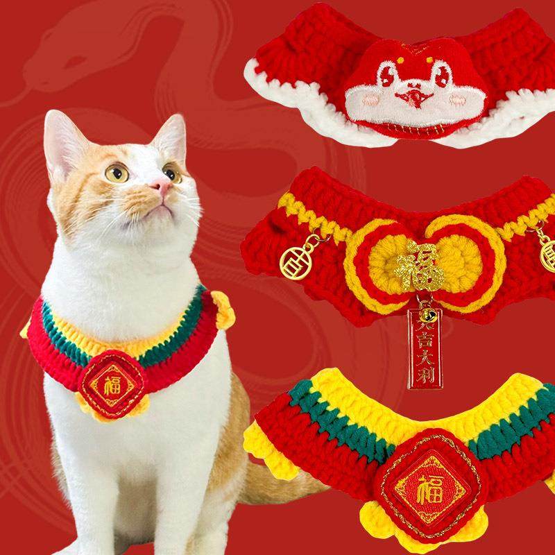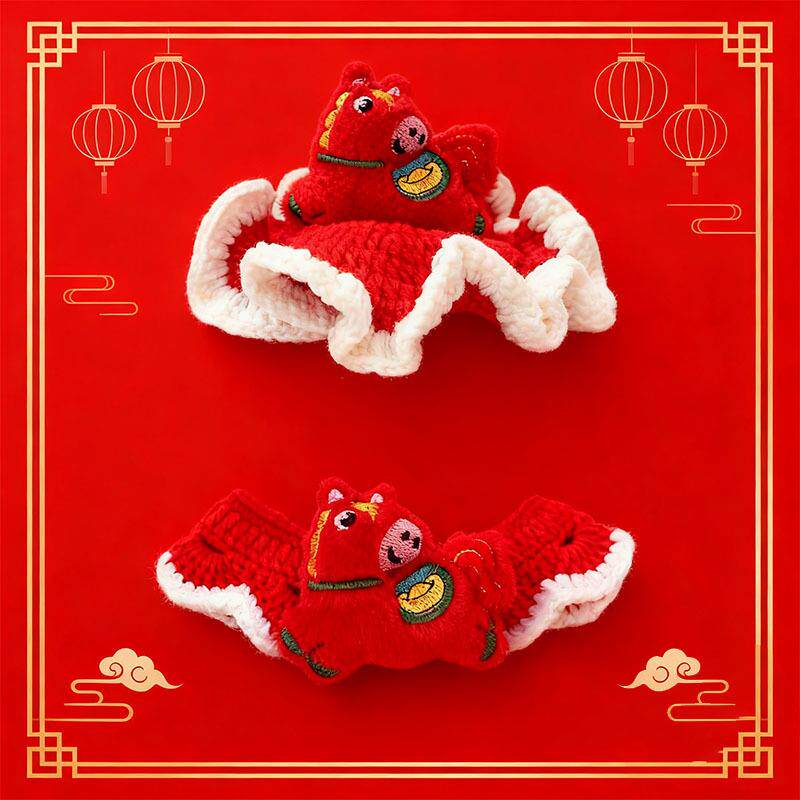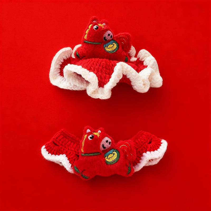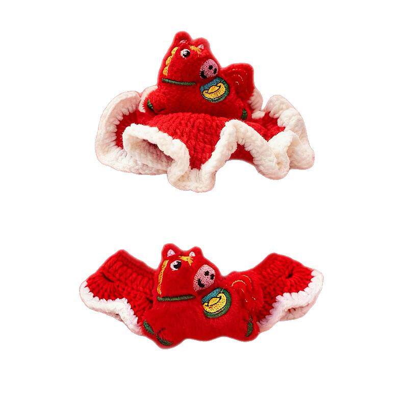 📚 2026新年马年帽子福字宠物钩织项圈围脖围巾猫咪泰迪雪纳瑞围脖