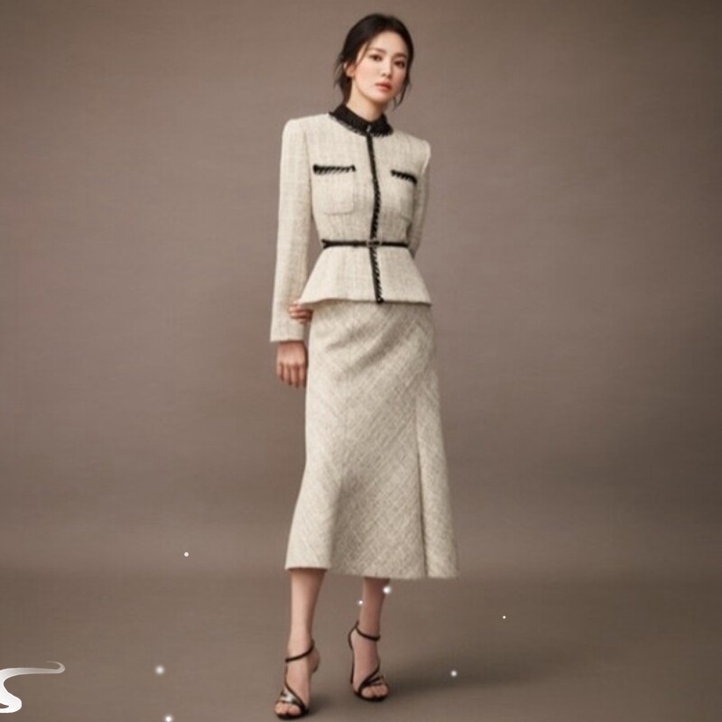 📚 欧洲宋慧乔同款小香风套装女2024新款名媛高级感西装半身裙两件套