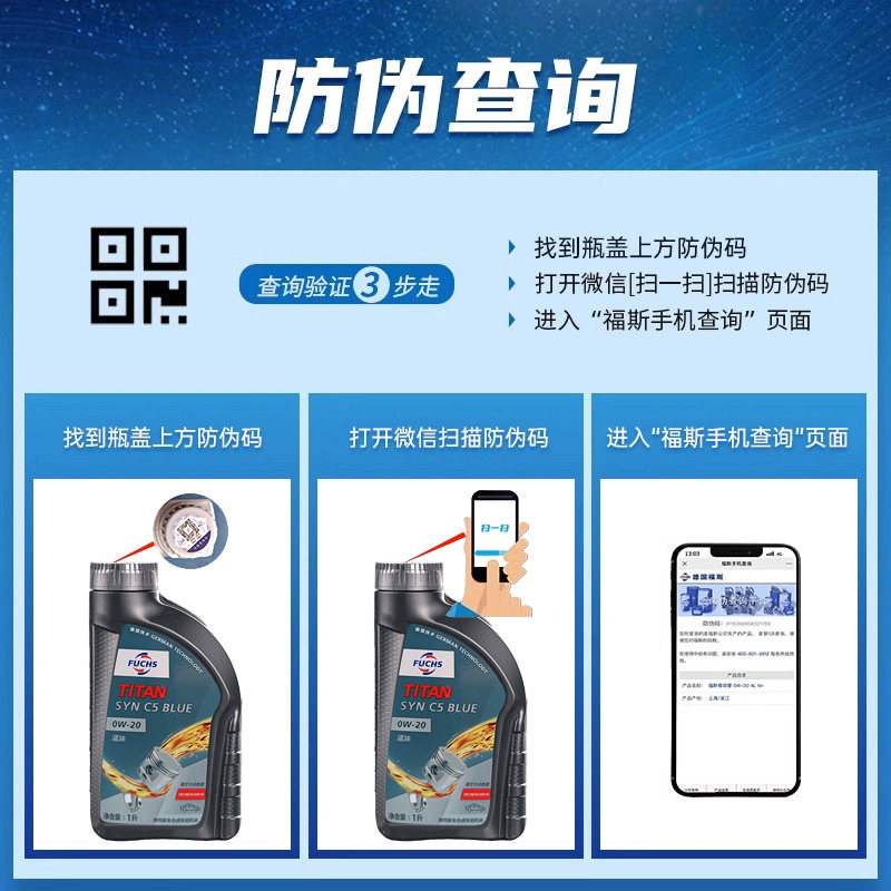 📚 德国FUCHS福斯全合成机油大众蓝油0w20汽车发动机油润滑油1L
