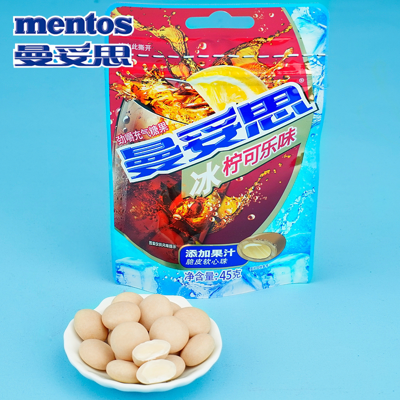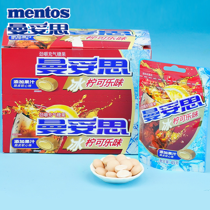 📚 曼妥思劲嚼充气糖果冰柠可乐味添加果汁脆皮软心珠接待商务薄荷糖