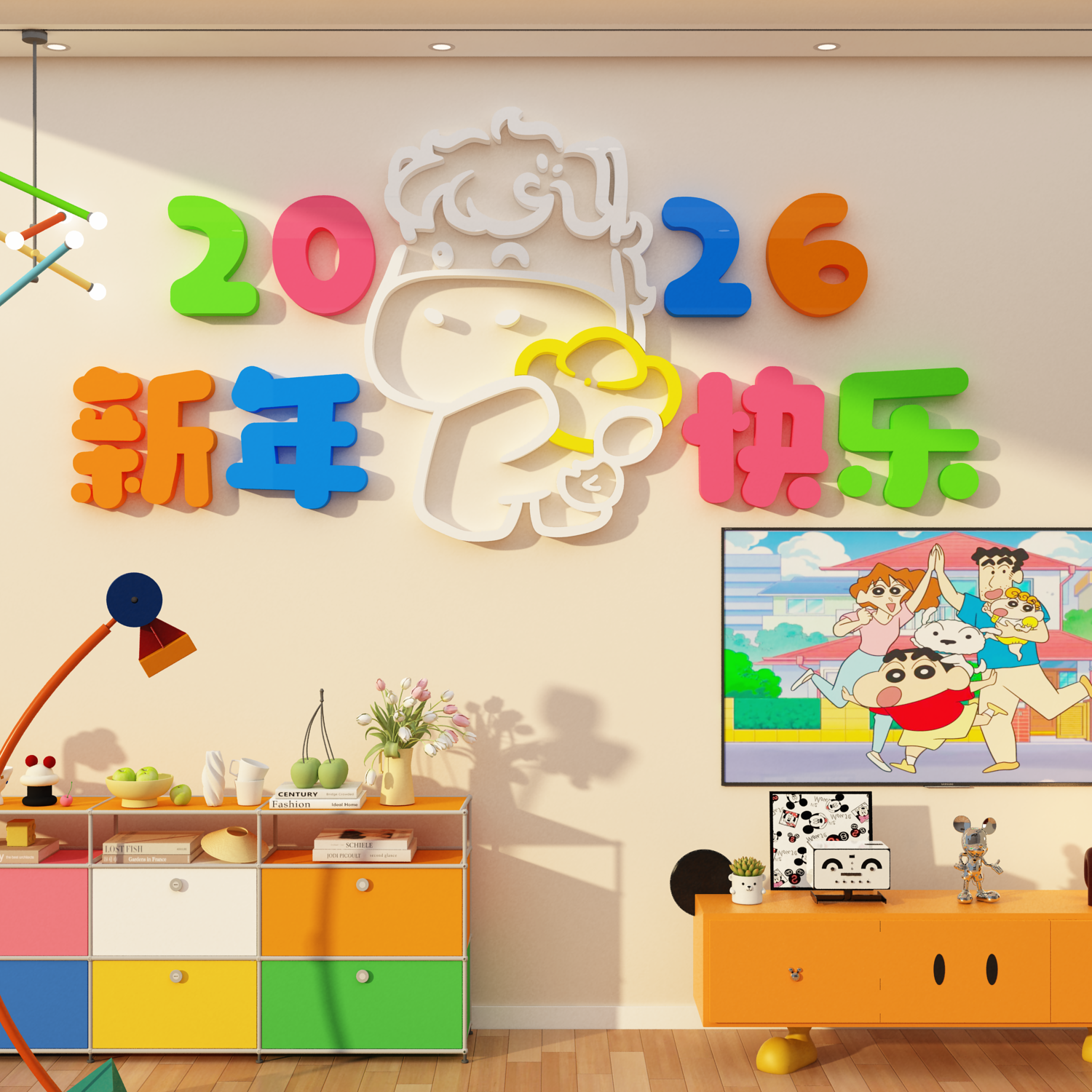 📚 2026过马新年快乐春节福字贴画电视机背景墙壁面贴纸装饰挂件形象