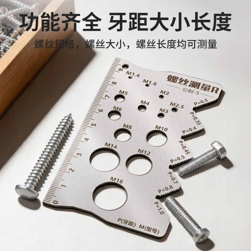 📚 鹿仙子螺丝测量尺高精度螺纹牙距通用直径长度测量工具不锈钢卡尺