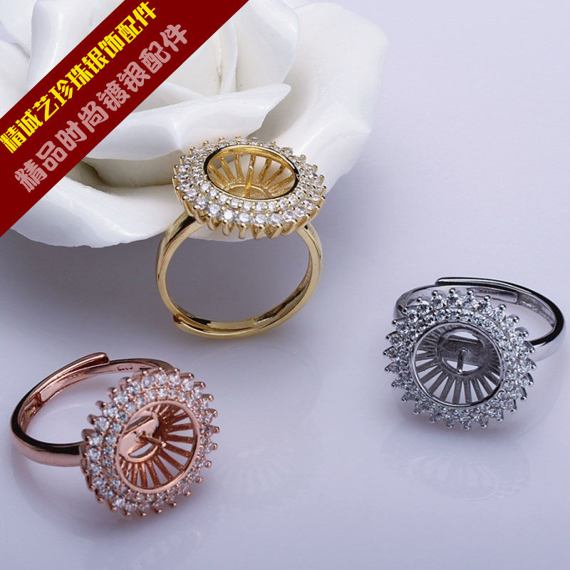 📚 diy配件 天然珍珠皇妃款戒指 指环半成品空托可自由调节指环大小