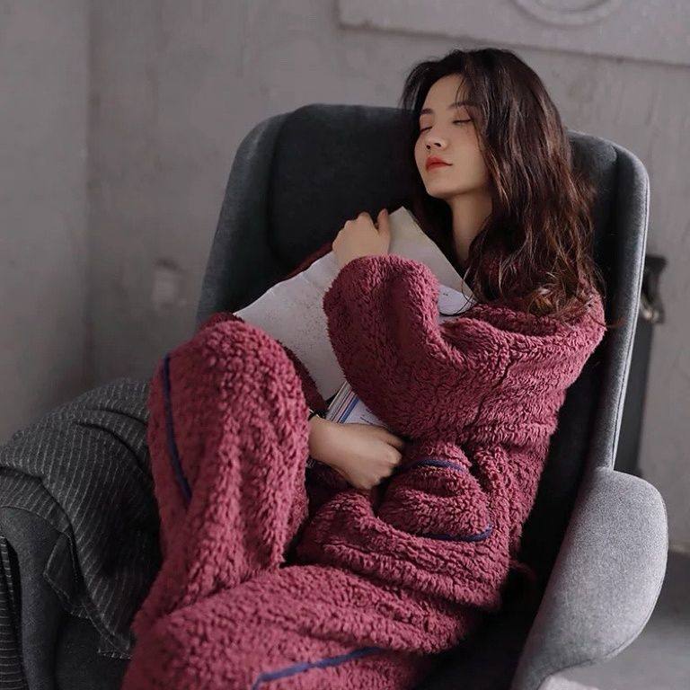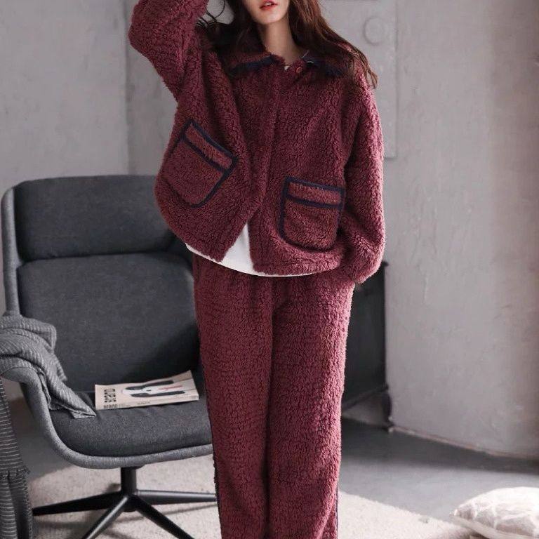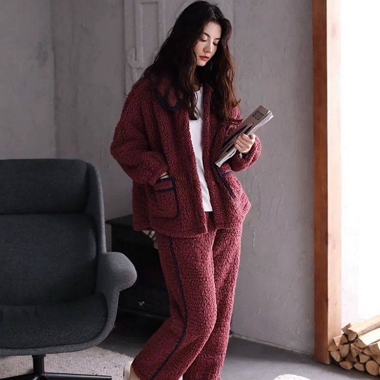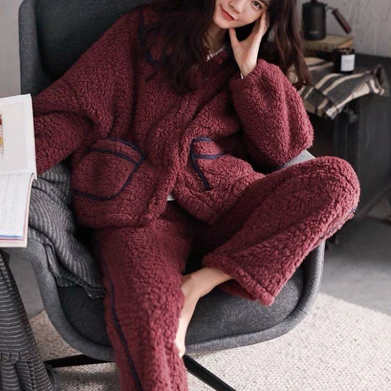 📚 新款睡衣女冬季加绒加厚保暖珊瑚绒羊羔绒开衫秋冬款家居服套装