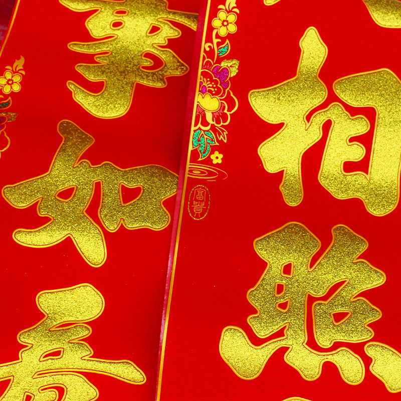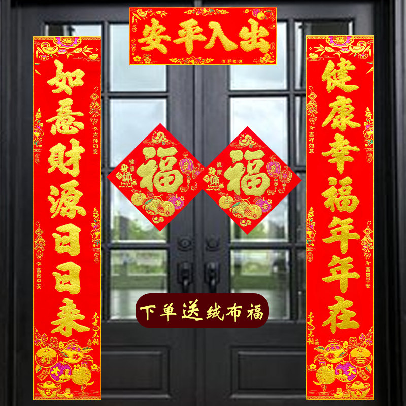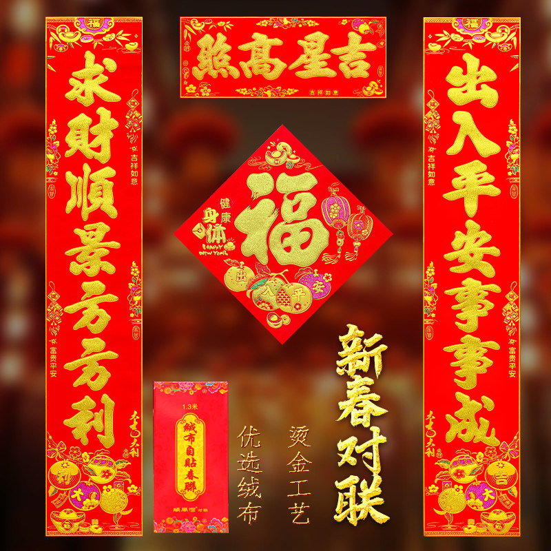 📚 高档绒布自粘春联202龙年家用门口瓷砖对联店铺商场大门门联门贴