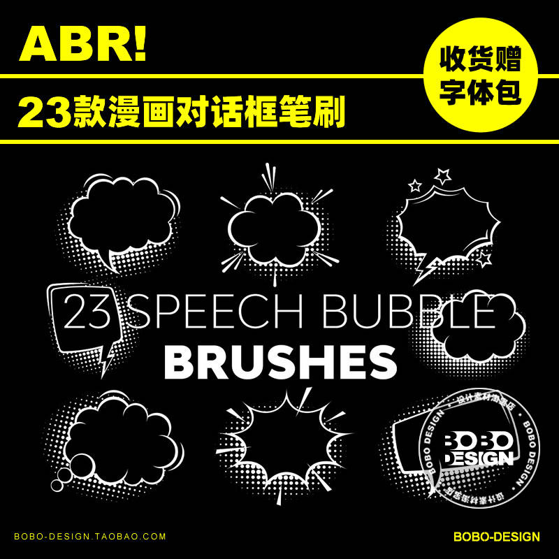 📚 23款卡通漫画气泡爆炸云朵圆圈对话框abr笔刷PS手绘插画设计素材