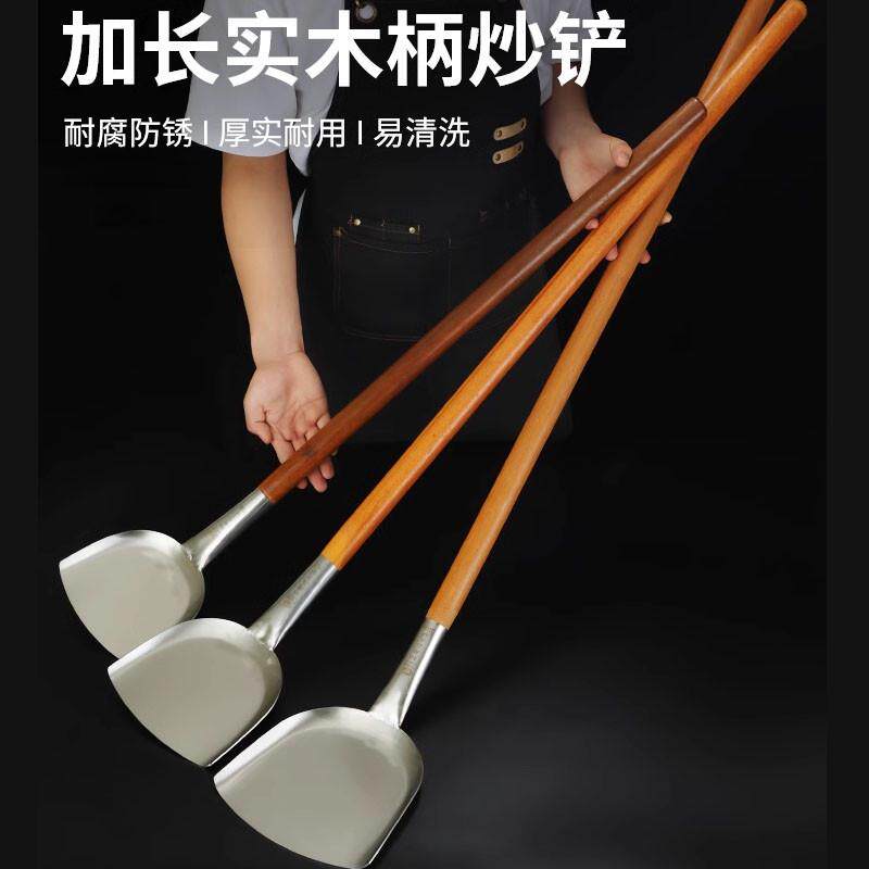 📚 不锈钢大铲头 木柄大锅铲 食堂餐厅烹饪铲 长木柄锅铲头 钢柄炒铲