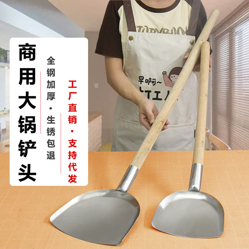 📚 加厚食堂大锅铲不锈钢大锅铲木柄长柄锅铲加长大锅炒菜铲钢锅铲头