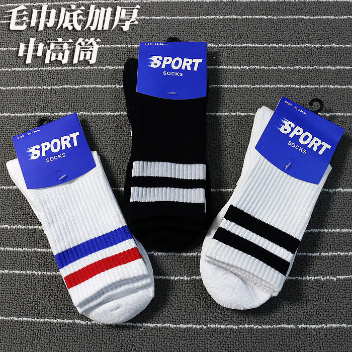 📚 冬季毛巾底加厚二道杠中高筒运动袜子纯棉男袜吸汗防臭保暖篮球袜