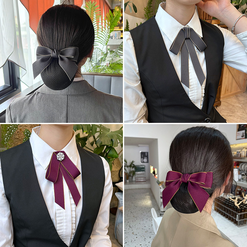 📚 头花女网兜护士发网职业服务员餐饮盘头发头饰空姐银行发饰蓝黑色