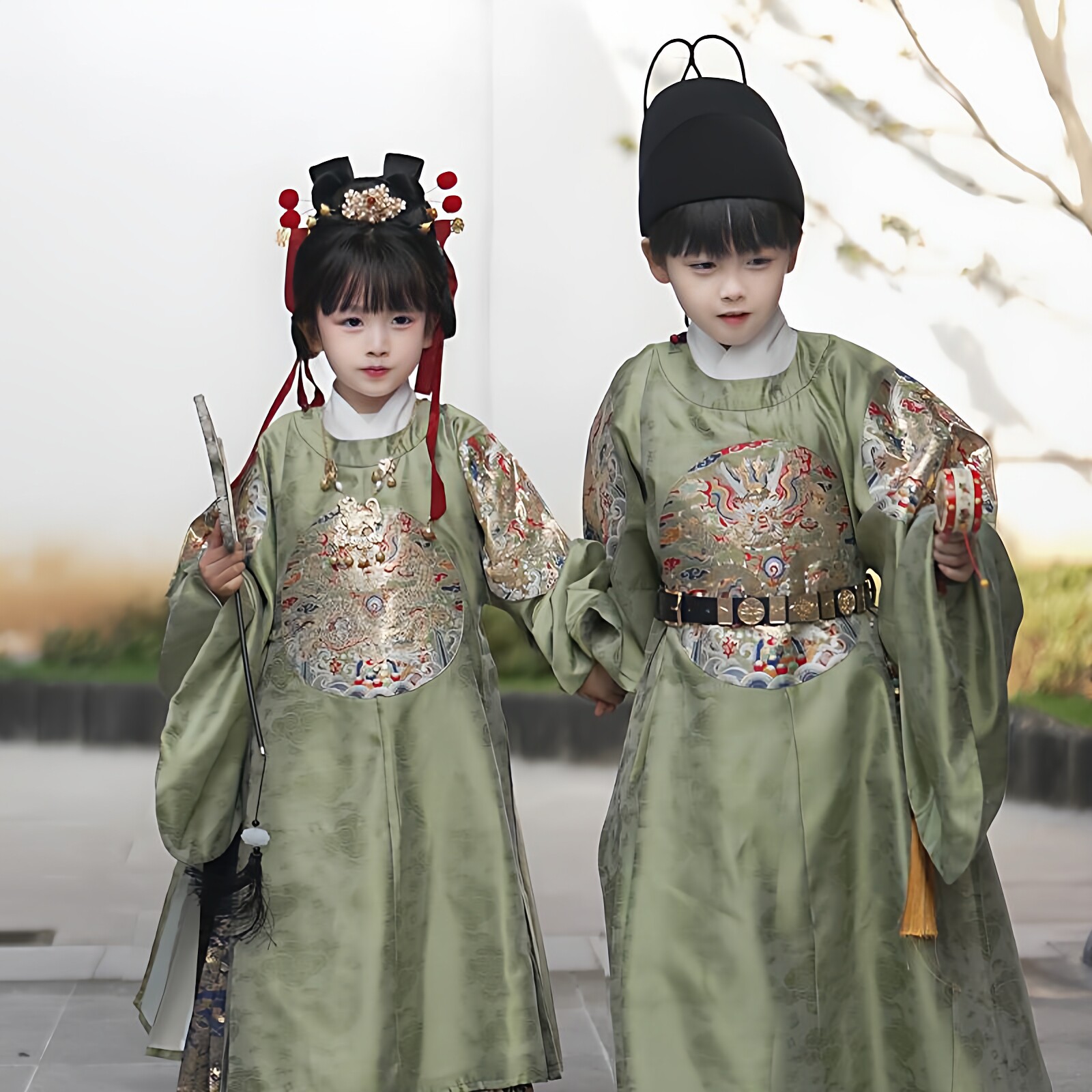 📚 儿童明代汉服女童明朝服饰儿童明代圆领补服中国风复古明制汉服
