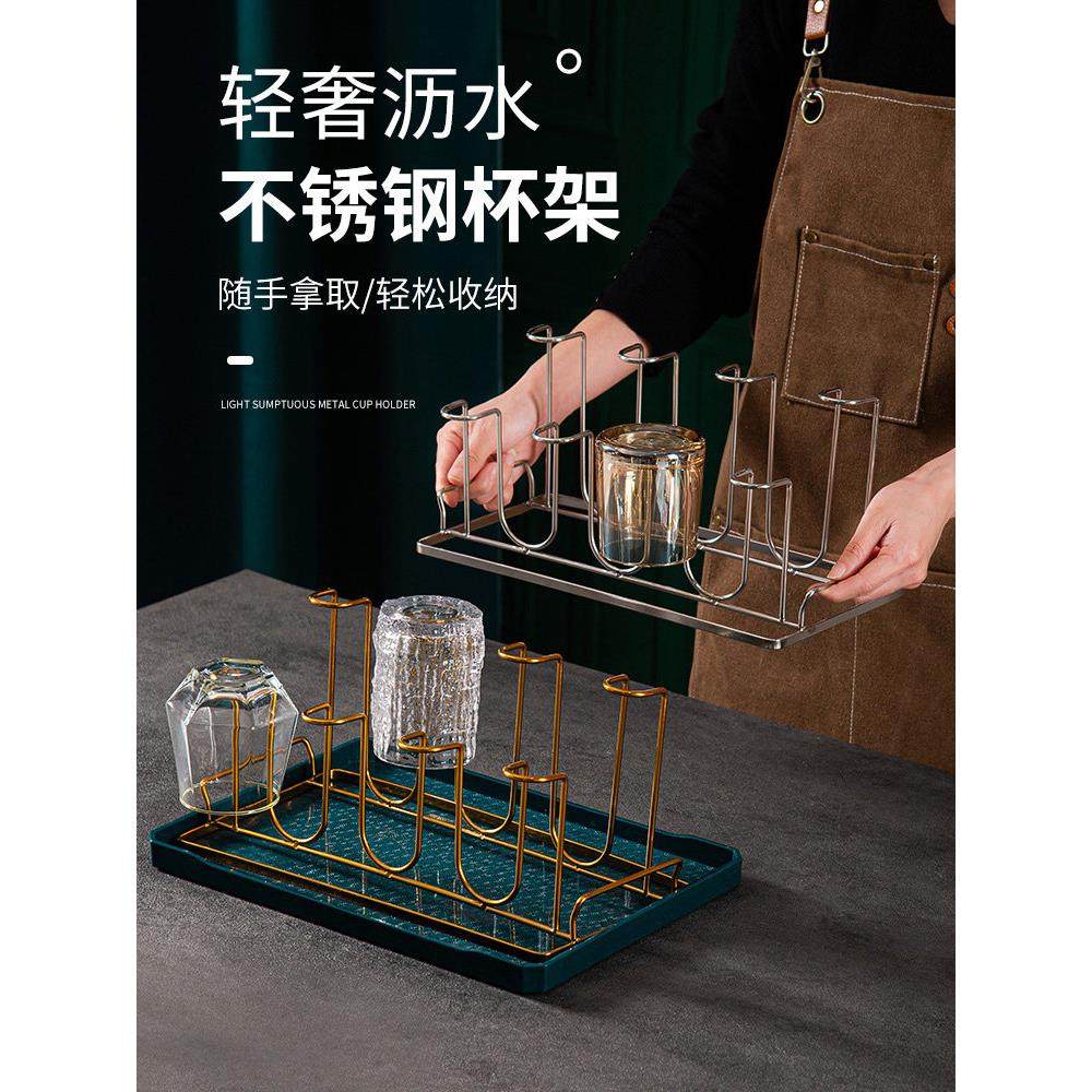 📚 玻璃杯挂架家用杯架客厅杯子倒扣收纳茶杯架子不锈钢置物架神器