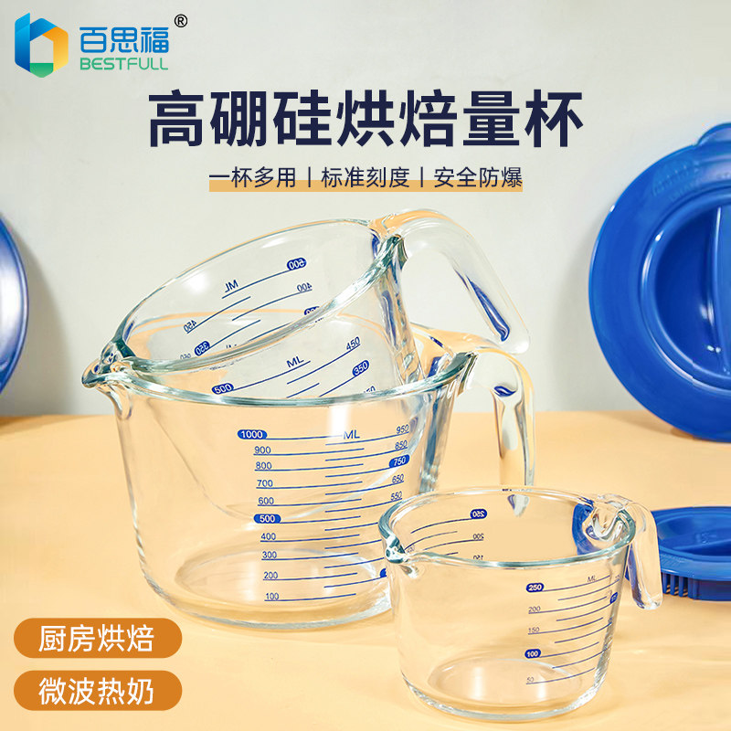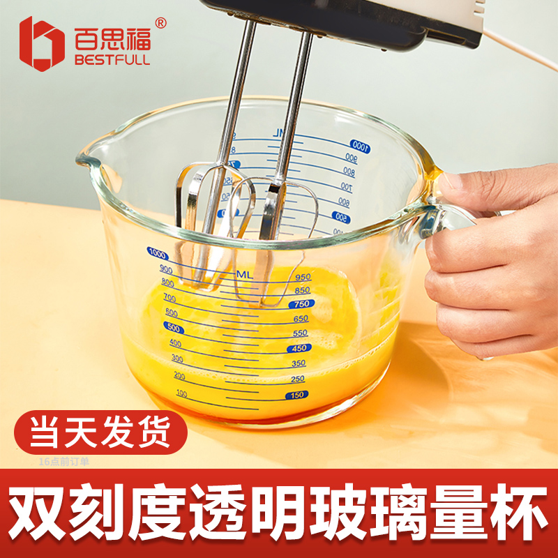 📚 百思福玻璃量杯带刻度耐高温家用食品级厨房烘焙打鸡蛋杯子牛奶杯