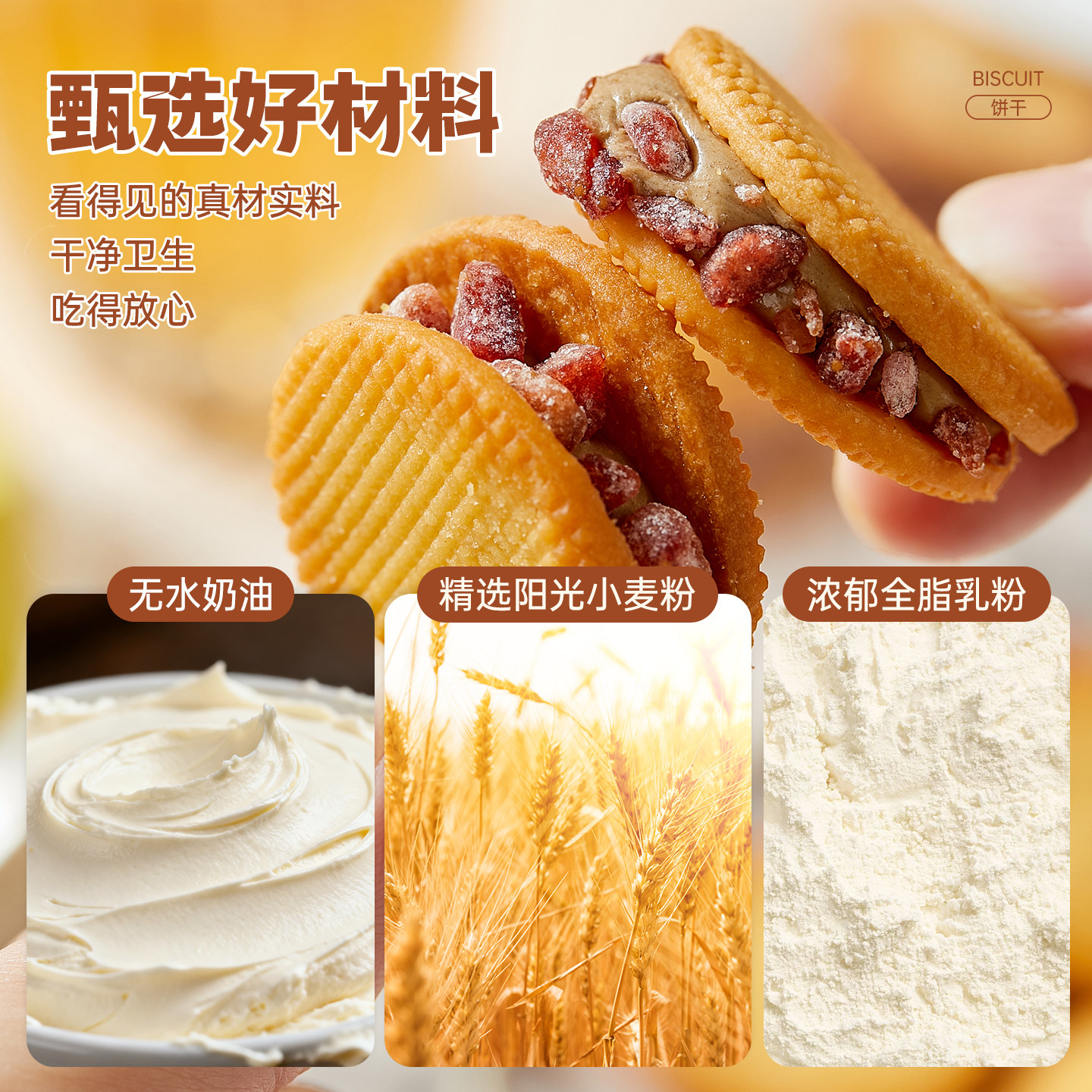 📚 软香拉丝!啵啵奶酥沙不列牛扎夹心饼干蔓越莓可可味网红休闲零食