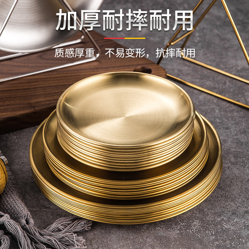 📚 韩式不锈钢骨碟套装家用桌面垃圾残渣吐骨头碟金色圆形小吃盘碟子