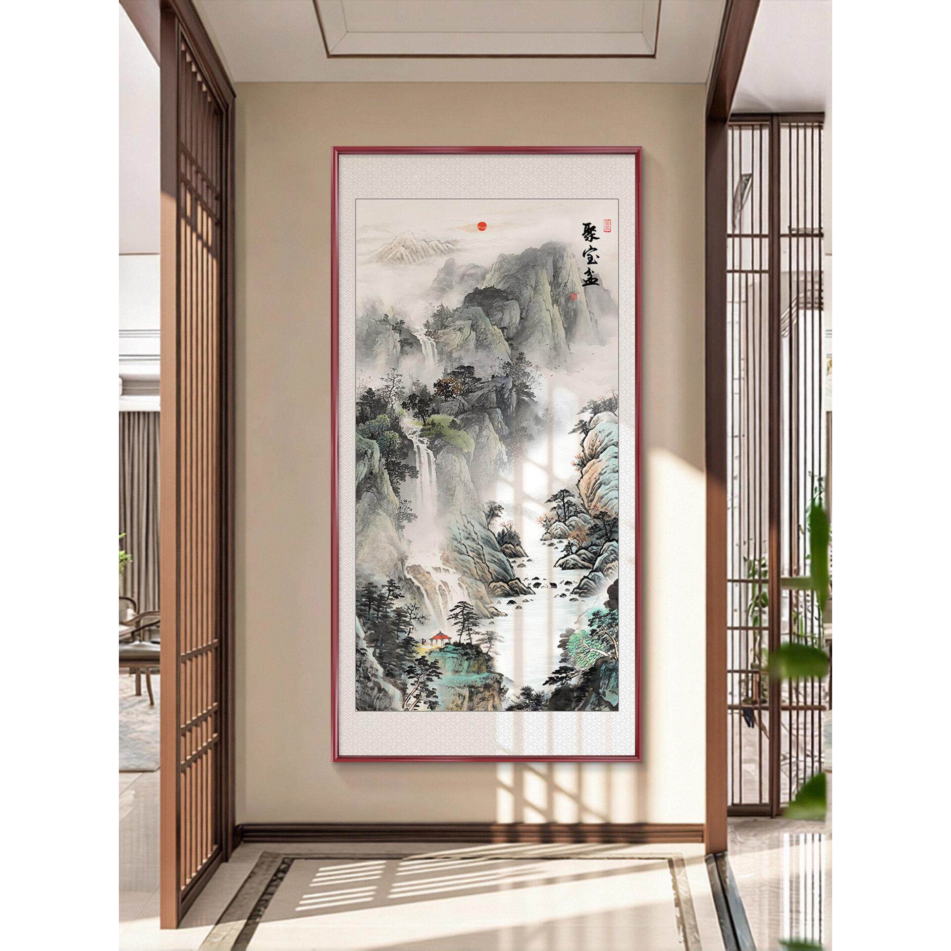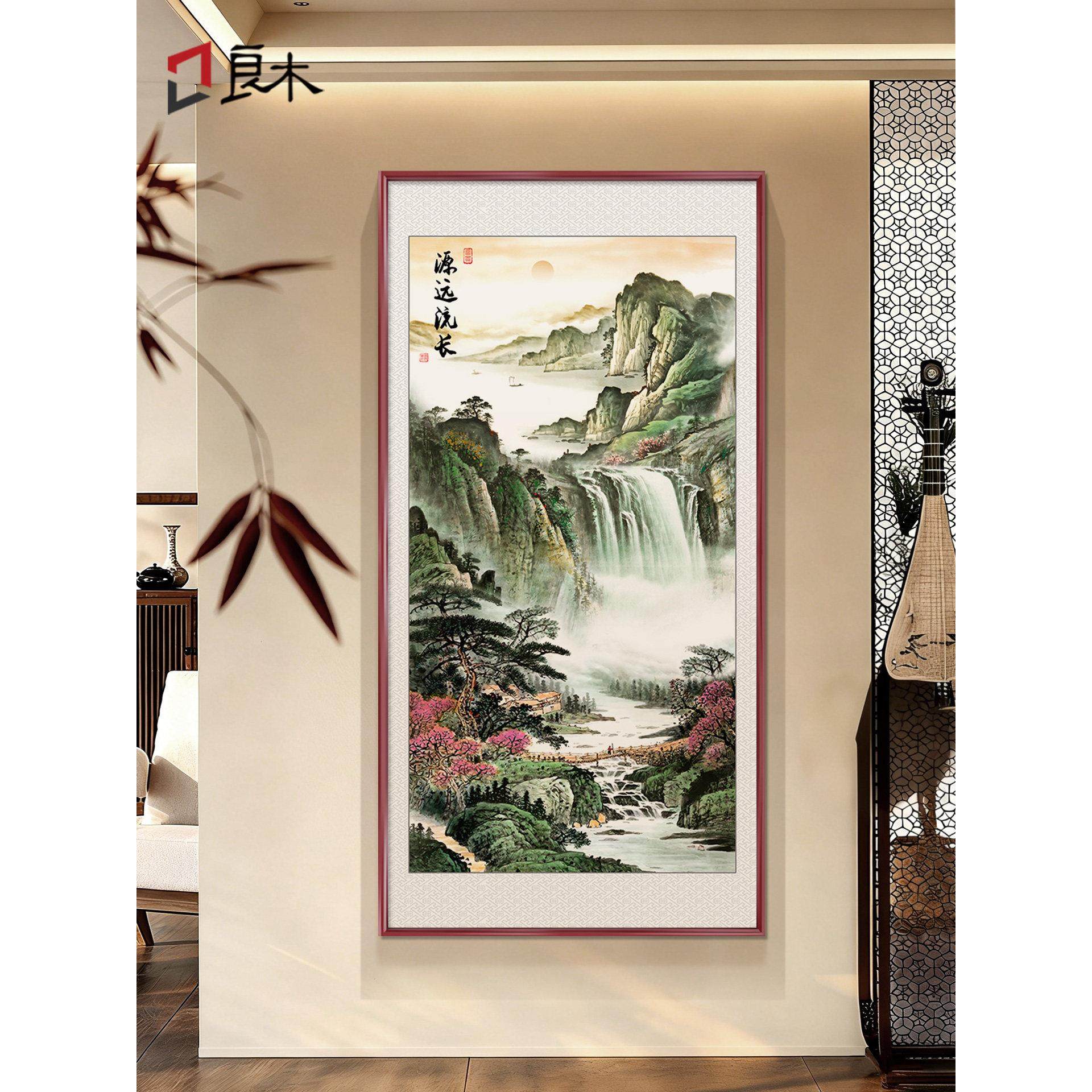 📚 旭日东升挂画新中式玄关装饰画入户正对门进门山水画聚财源远流长