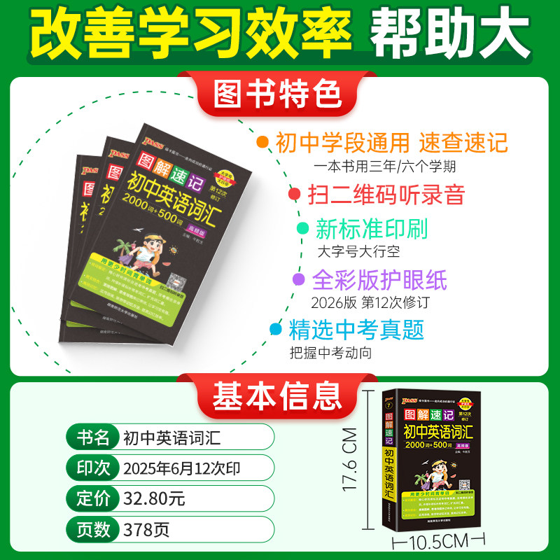 📚 书名:图解速记初中英语词汇2000词+500高频单词大全