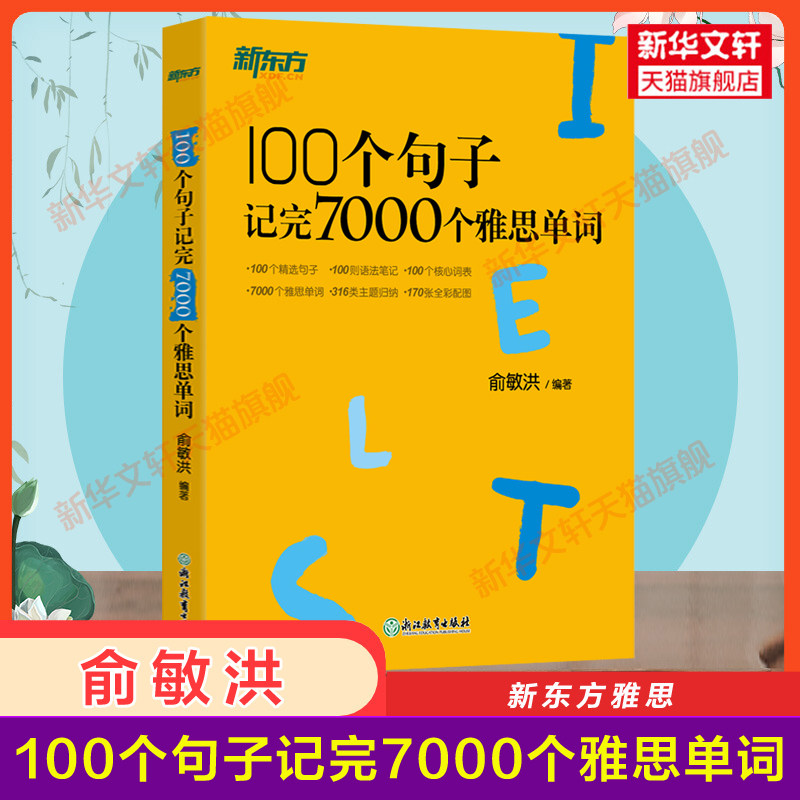 📚 新东方100个句子记完7000个雅思单词俞敏洪IELTS英语考试词汇备考学习资料书长难句可搭剑桥真题剑20剑雅口语阅读写作听力教材教程